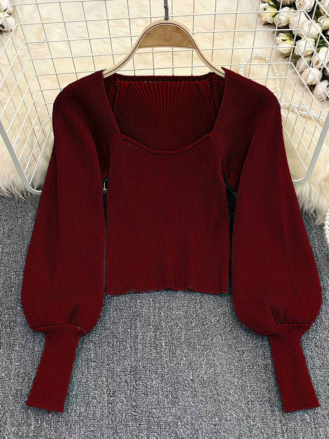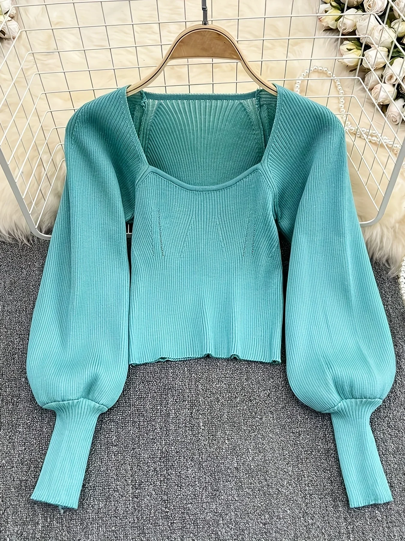Be the first to review “2024 New Solid Square Neck Pullover Sweater Casual Lantern Sleeve Slim Sweater For Spring & Fall Cr Top Women’s Clothing” Cancel reply