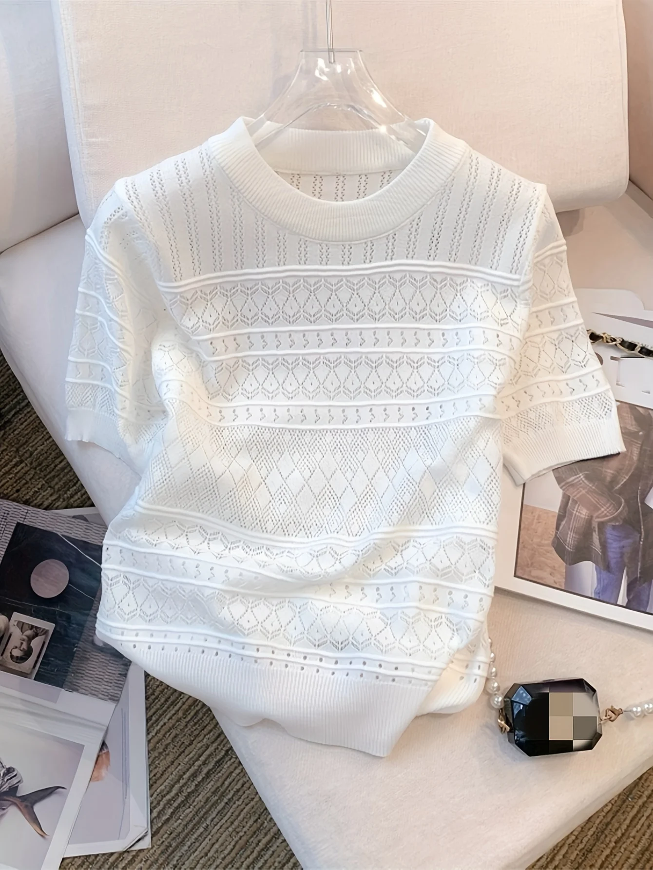 Be the first to review “2024 New Summer Thin Hollow Out Crew Neck Pullover Sweater Versatile Short Sleeve Knitted Top For Spring & Women’s Clothing” Cancel reply