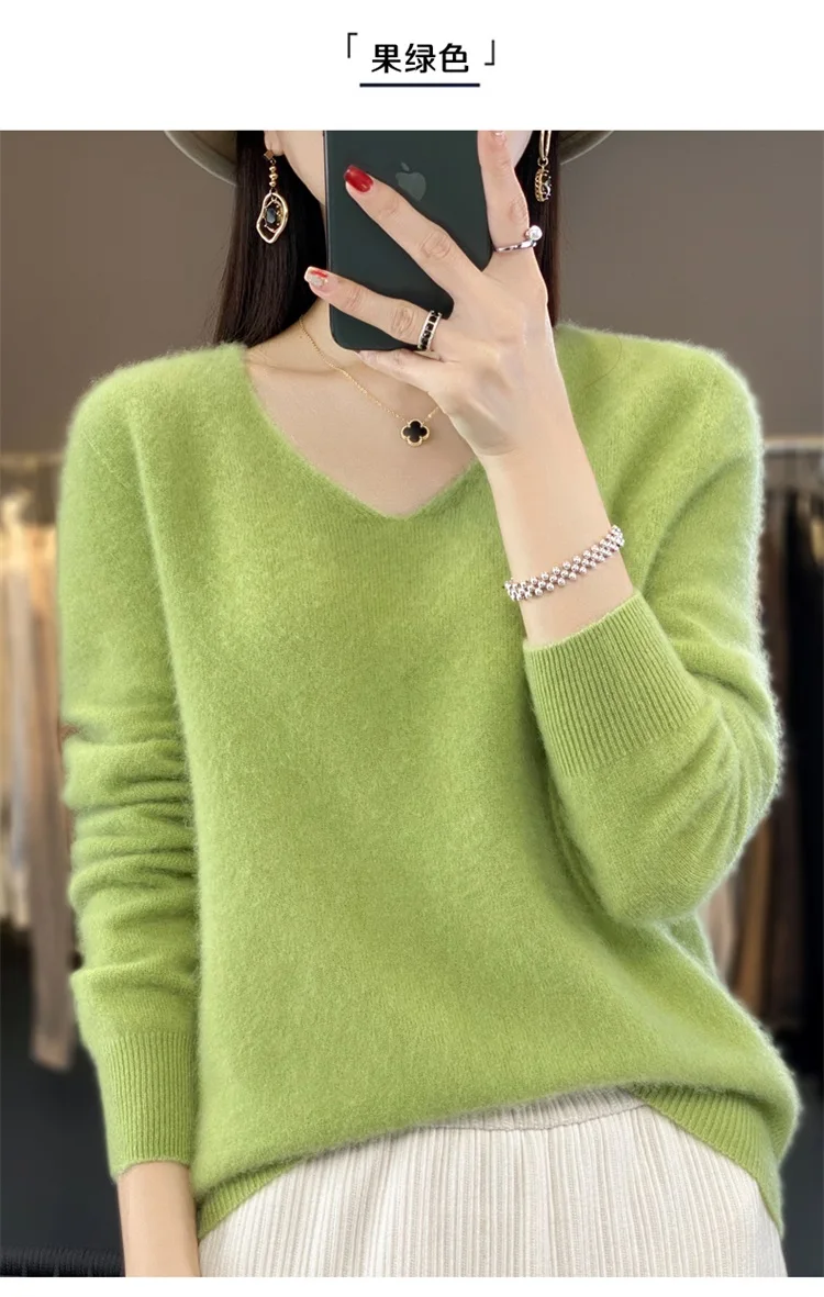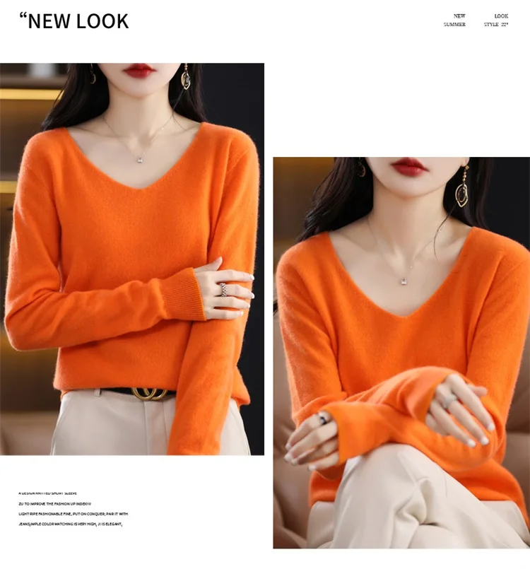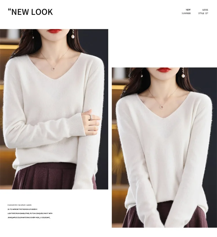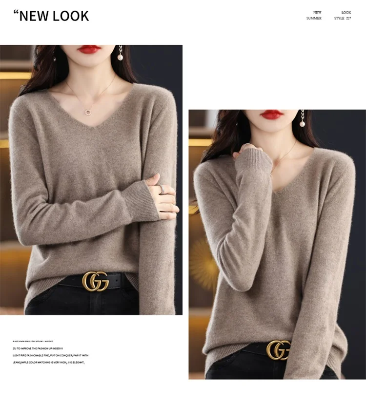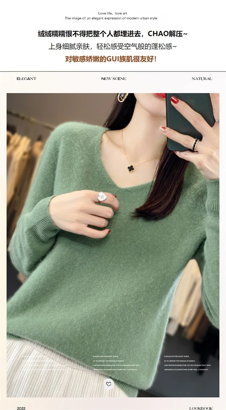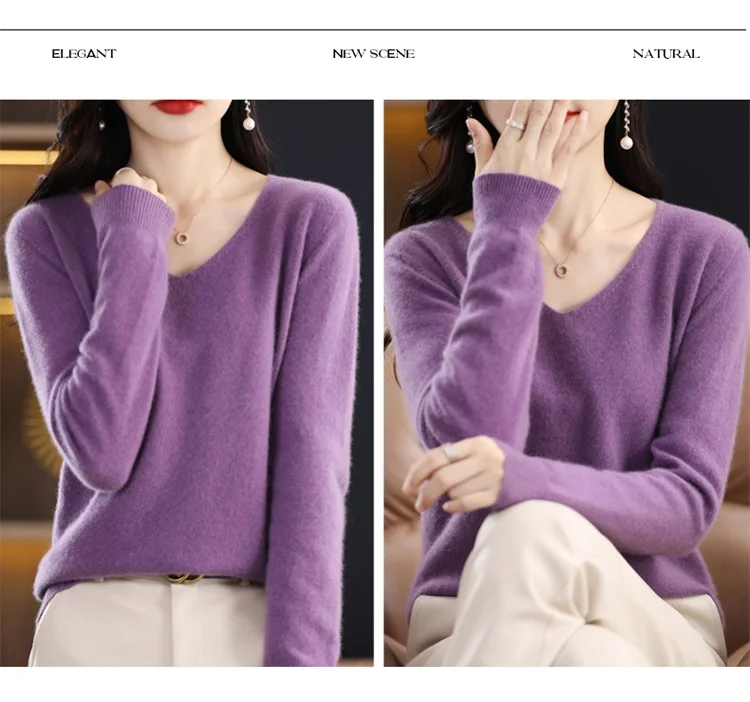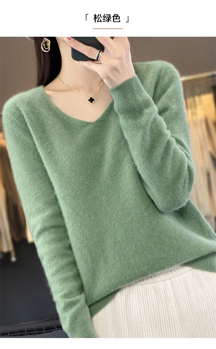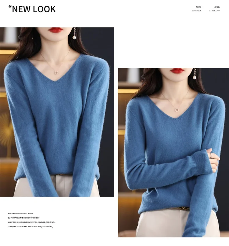 Autumn and winter new women’s first-line ready-to-wear 100% pure wool V-neck solid color loose warm cashmere pullover top