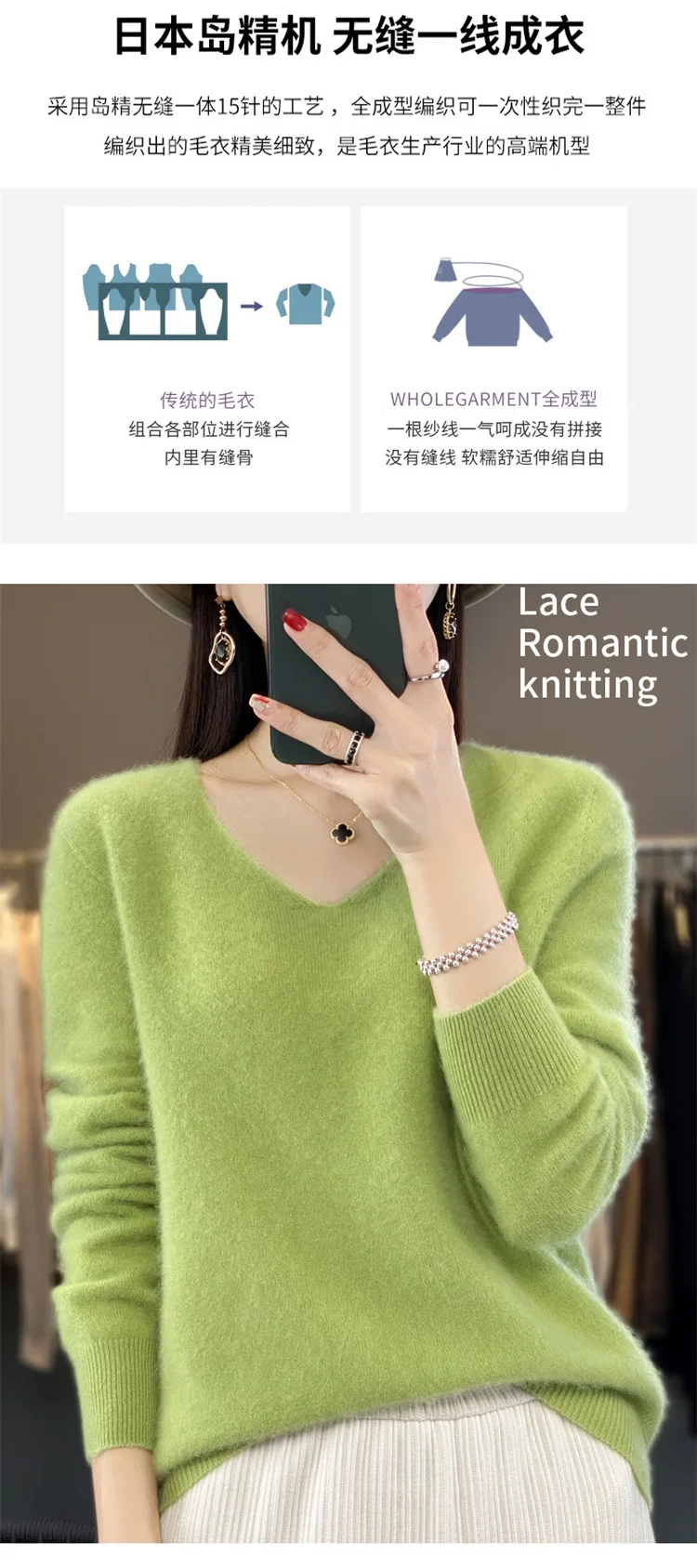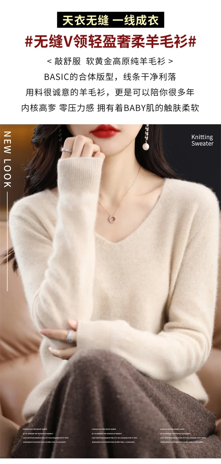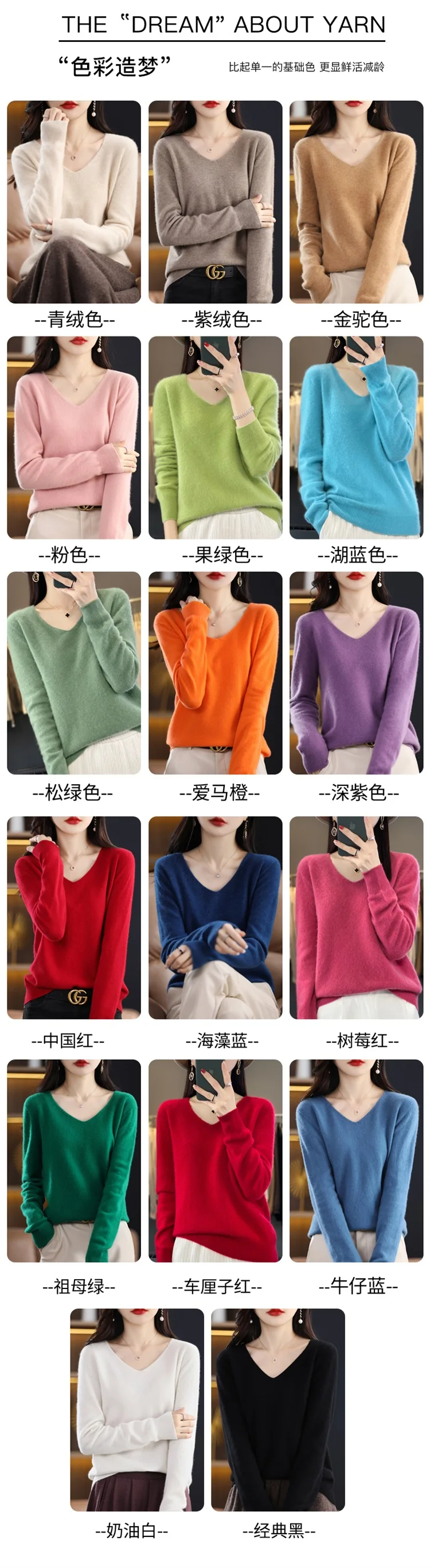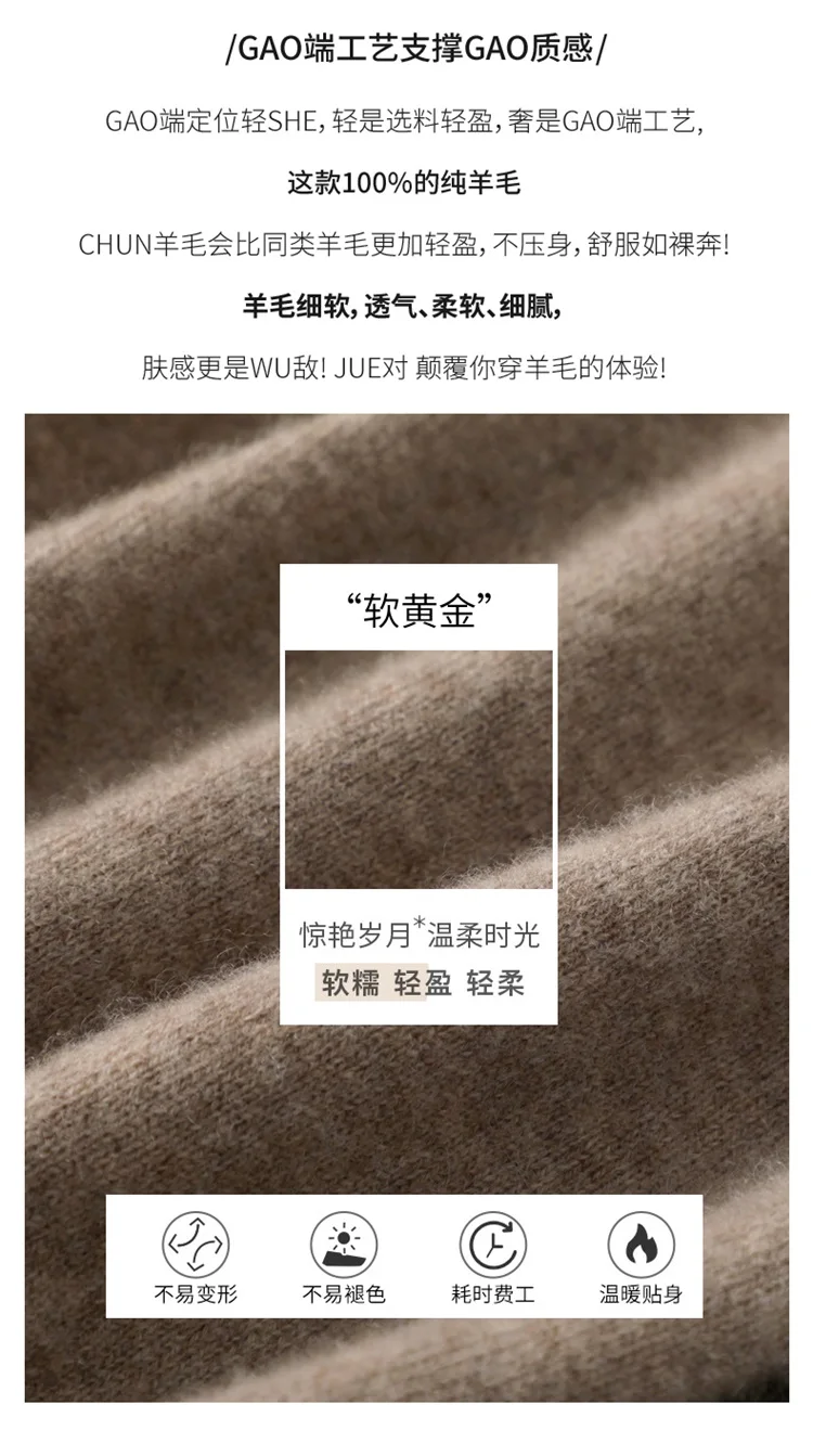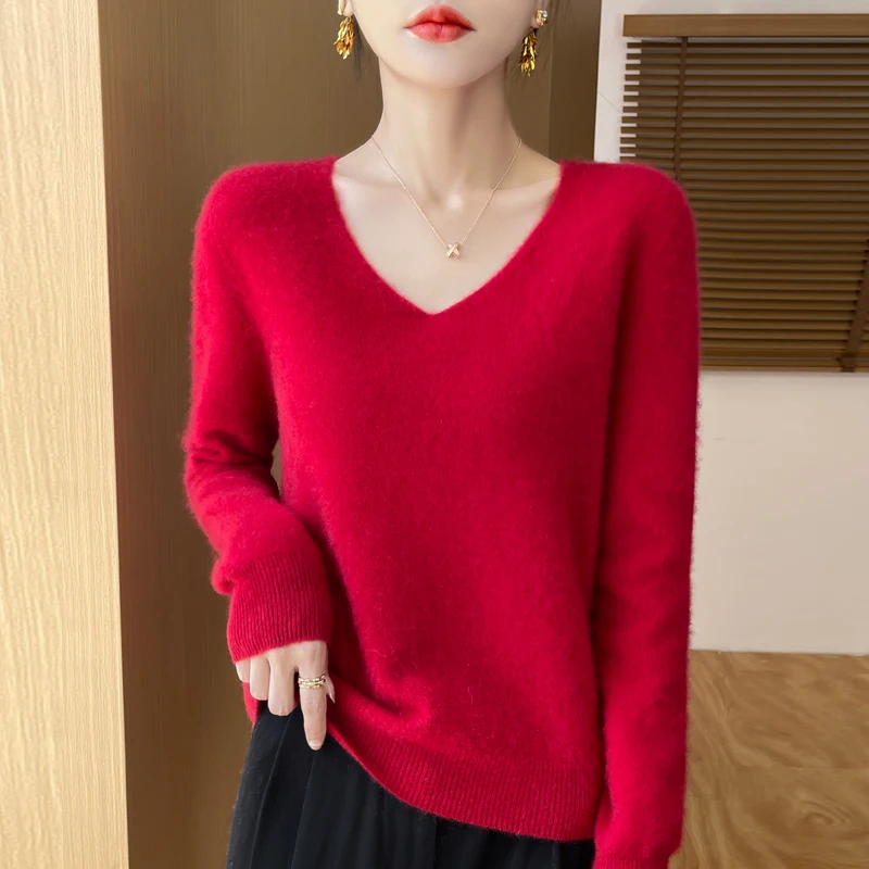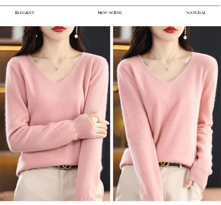 Autumn and winter new women’s first-line ready-to-wear 100% pure wool V-neck solid color loose warm cashmere pullover top