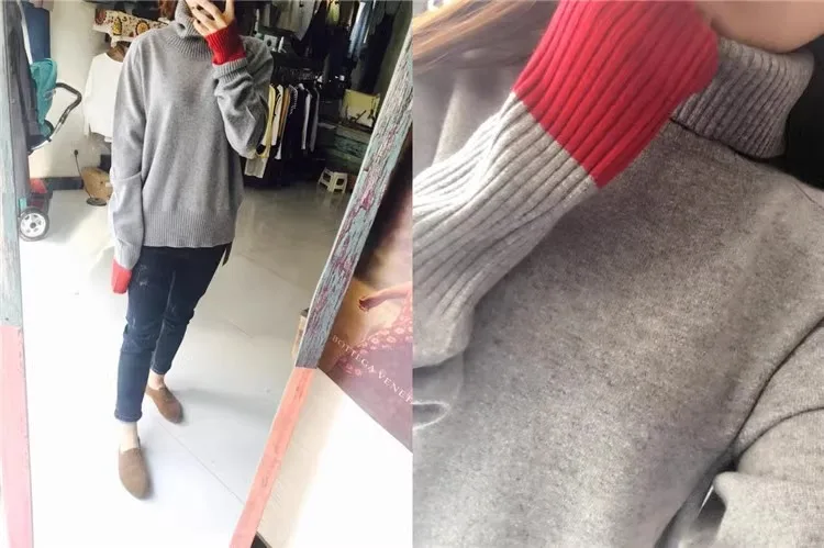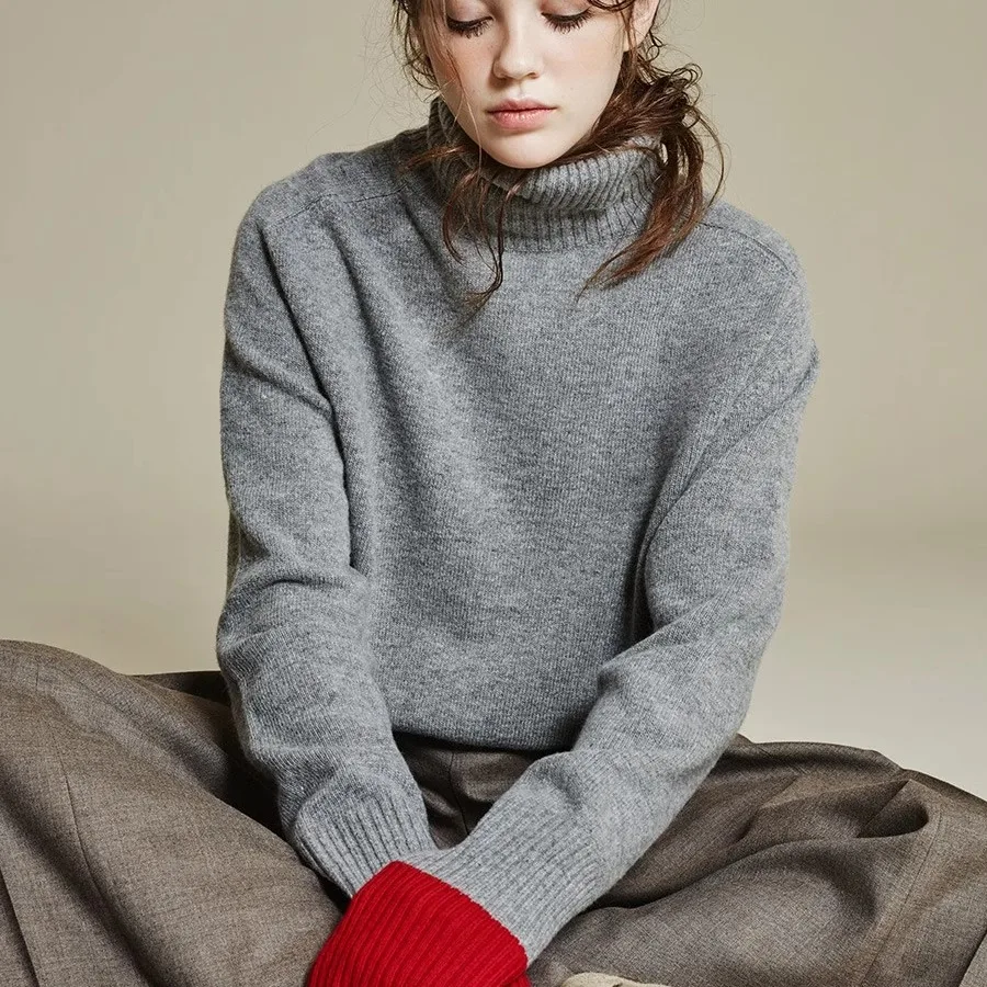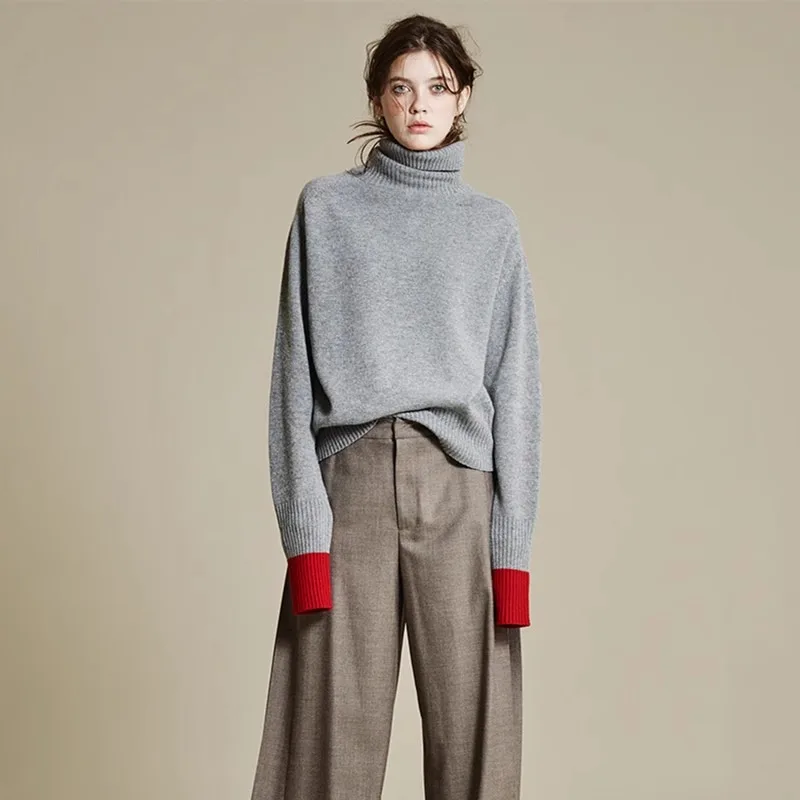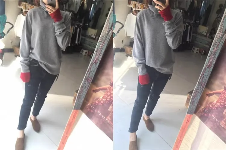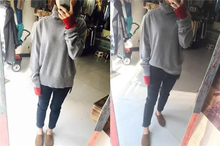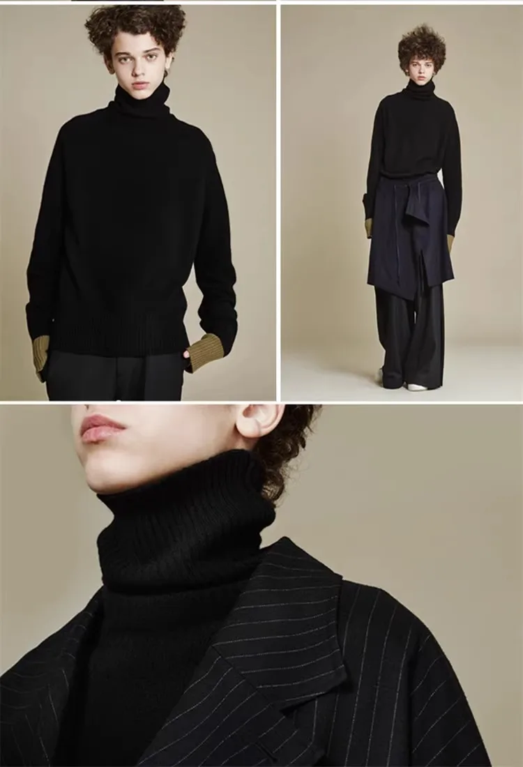 Europe United States high-end 100% pure cashmere sweater women’s turtleneck sweater thick loose knit bottom shirt autumn winter