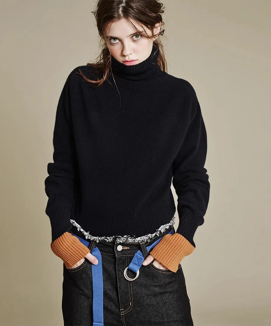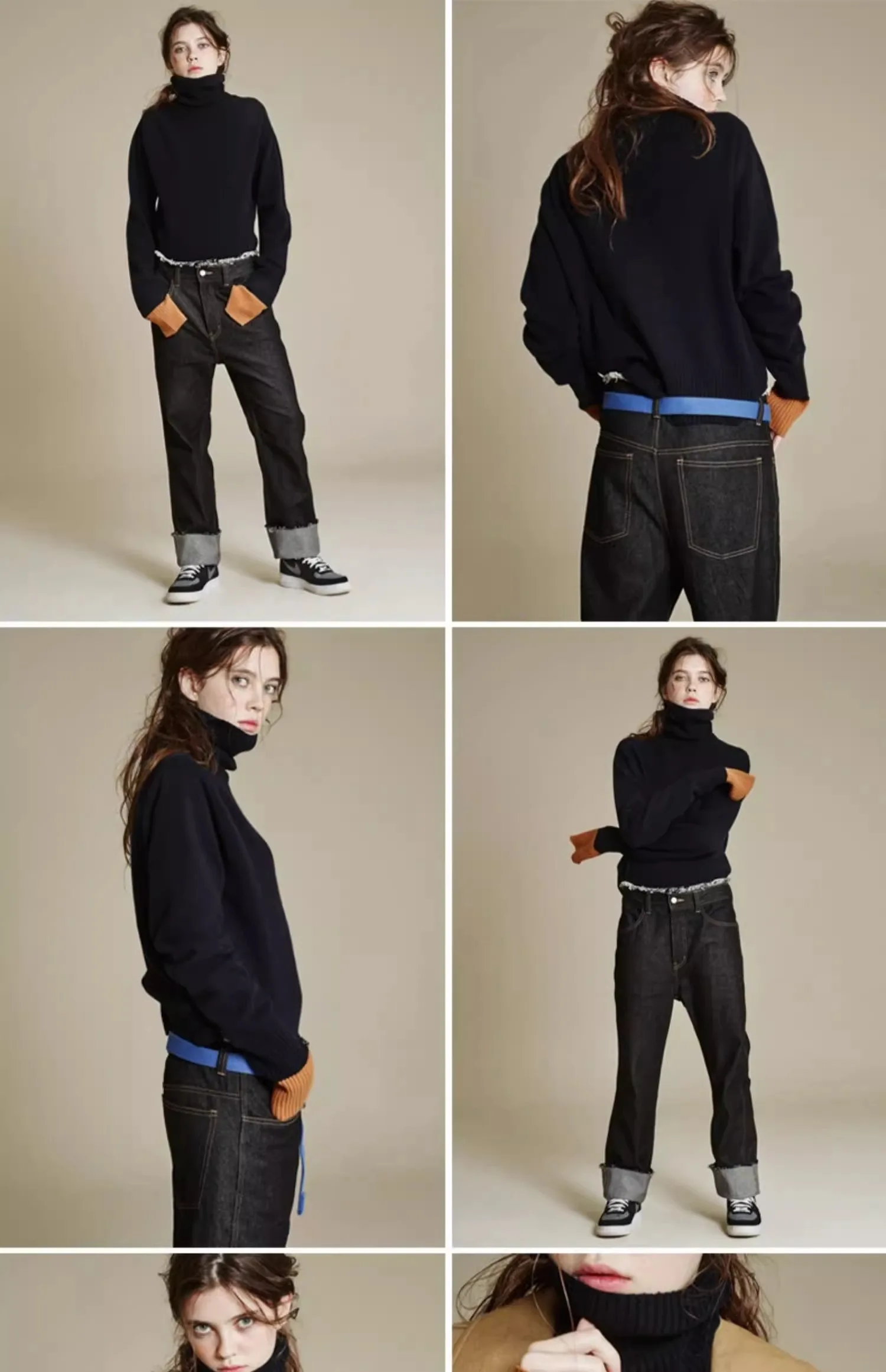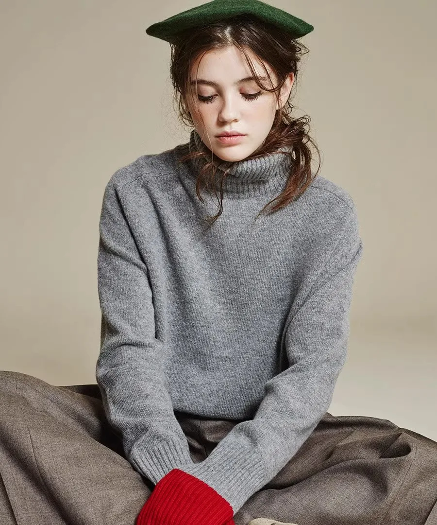 Europe United States high-end 100% pure cashmere sweater women’s turtleneck sweater thick loose knit bottom shirt autumn winter