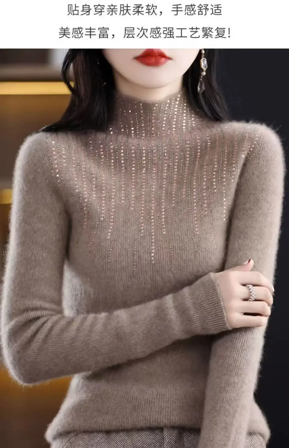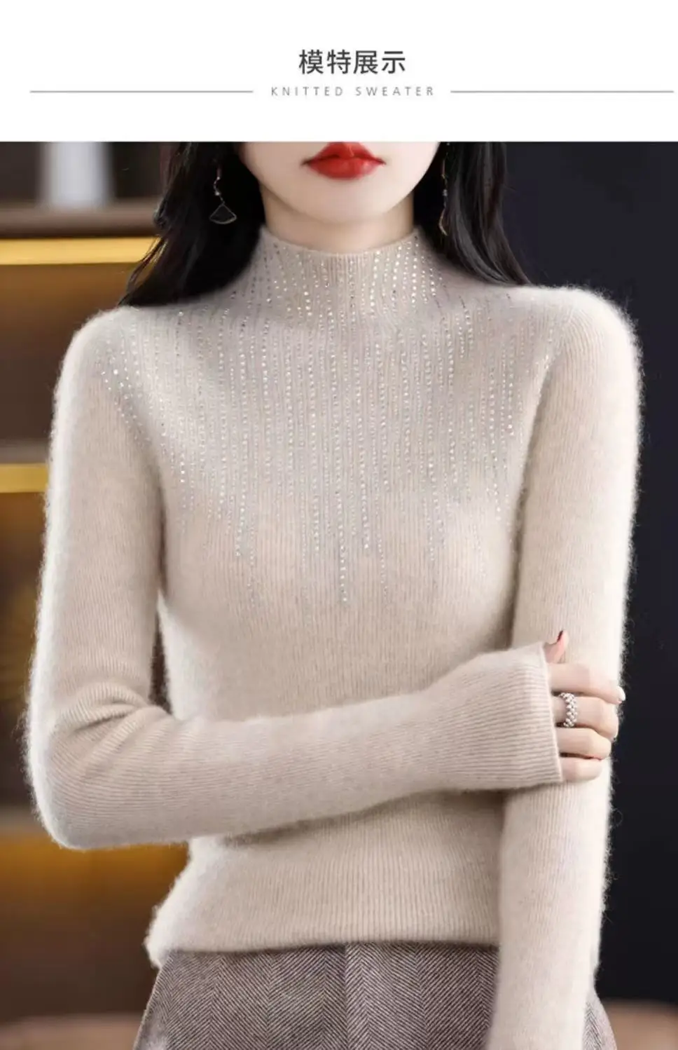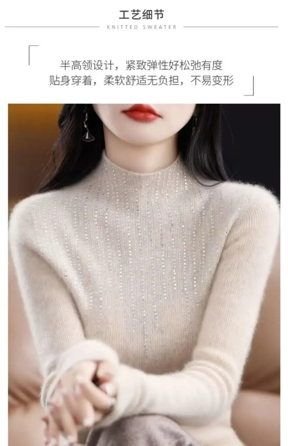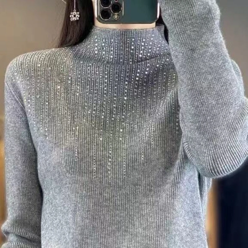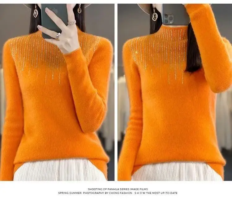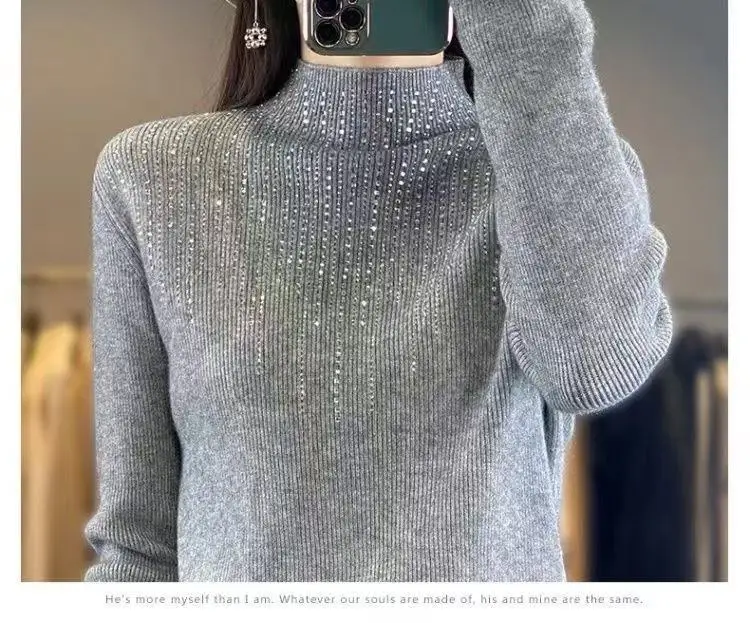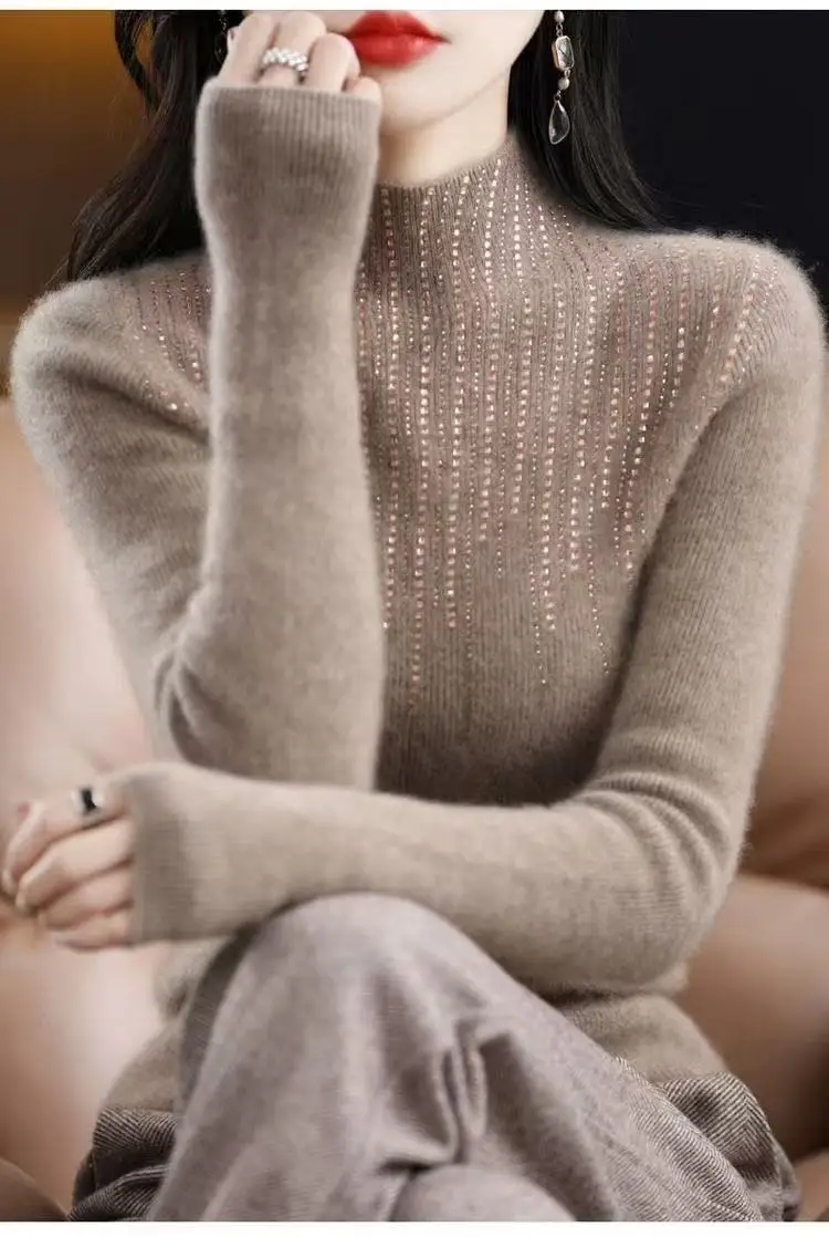 Fall/WinterMerino Wool Semi-high Collar Women Diamond Pullover Korean Fashion Soft Warm Sweater Solid Color Sweater Women’s Wear