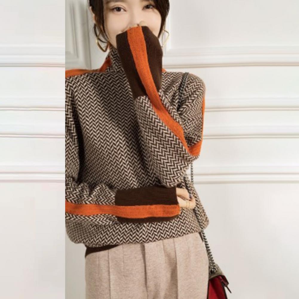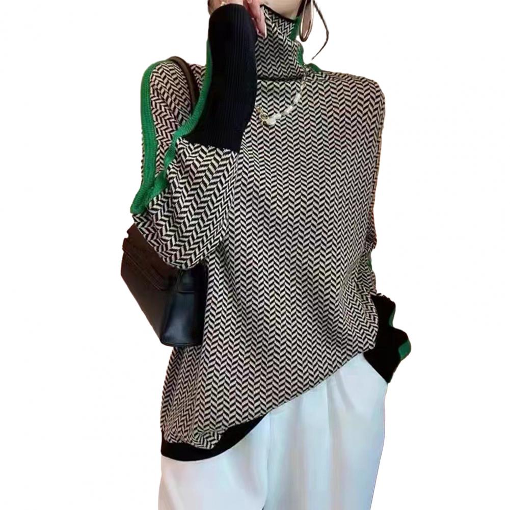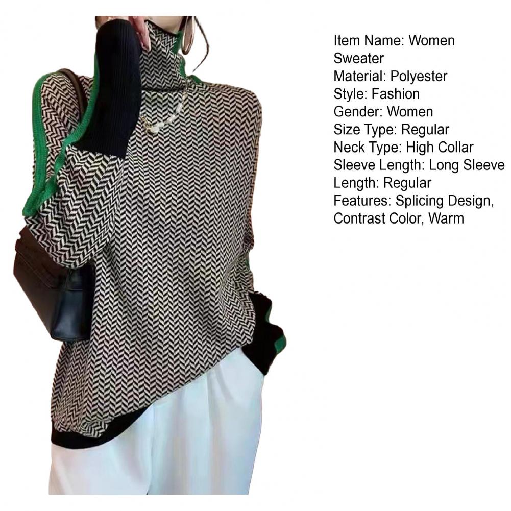 Loose Fit Women Sweater Lightweight Fabric Sweater Contrast Color Knit Sweater Stylish High Collar Long Sleeve Design for Women