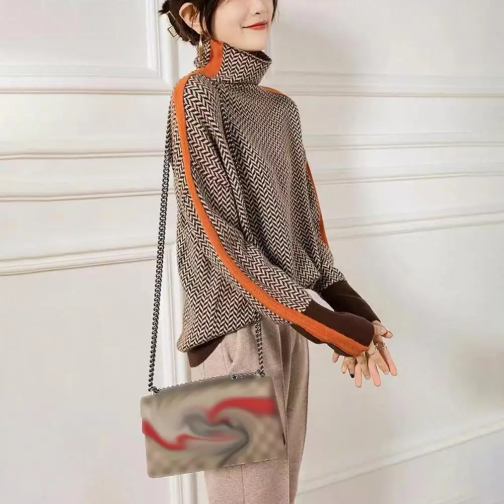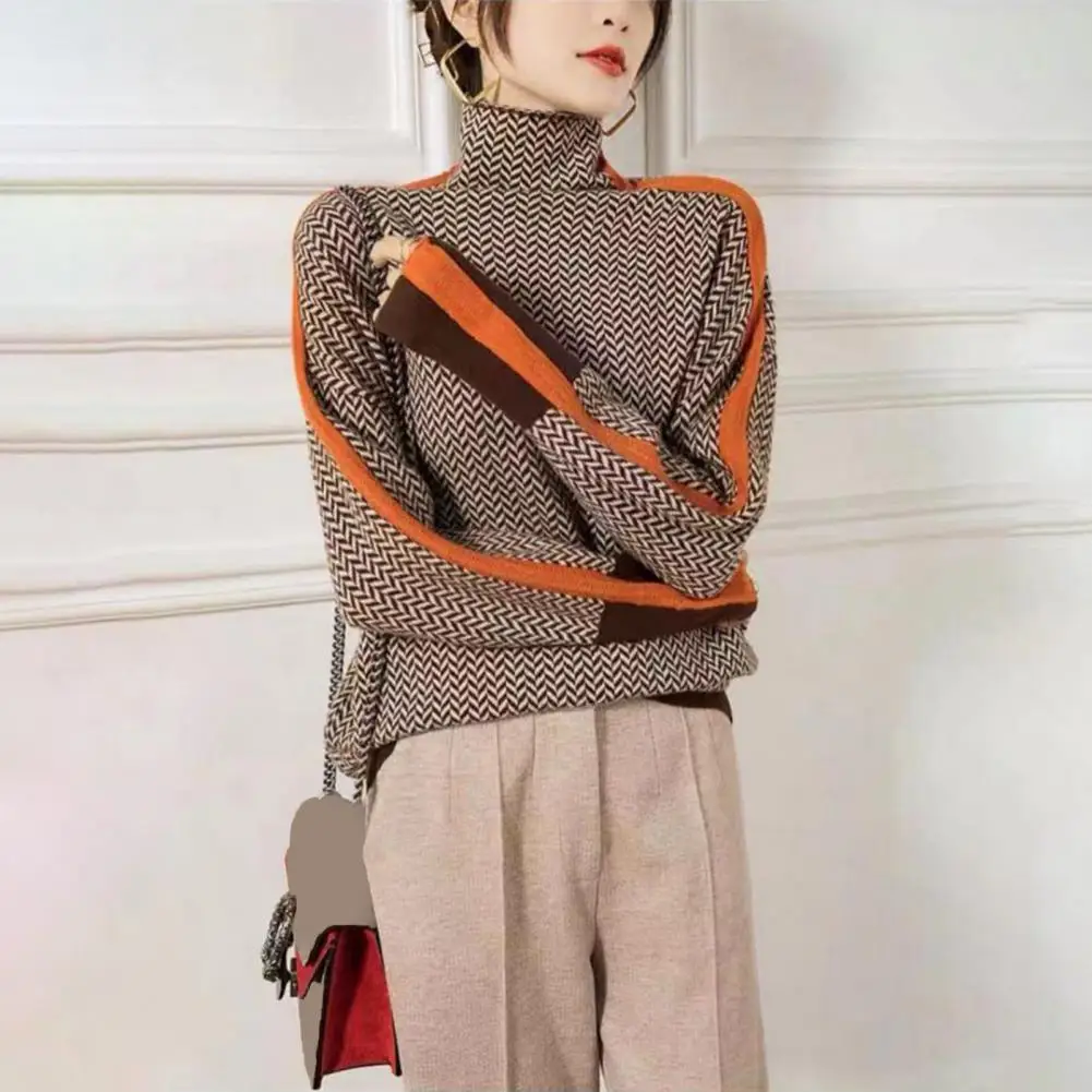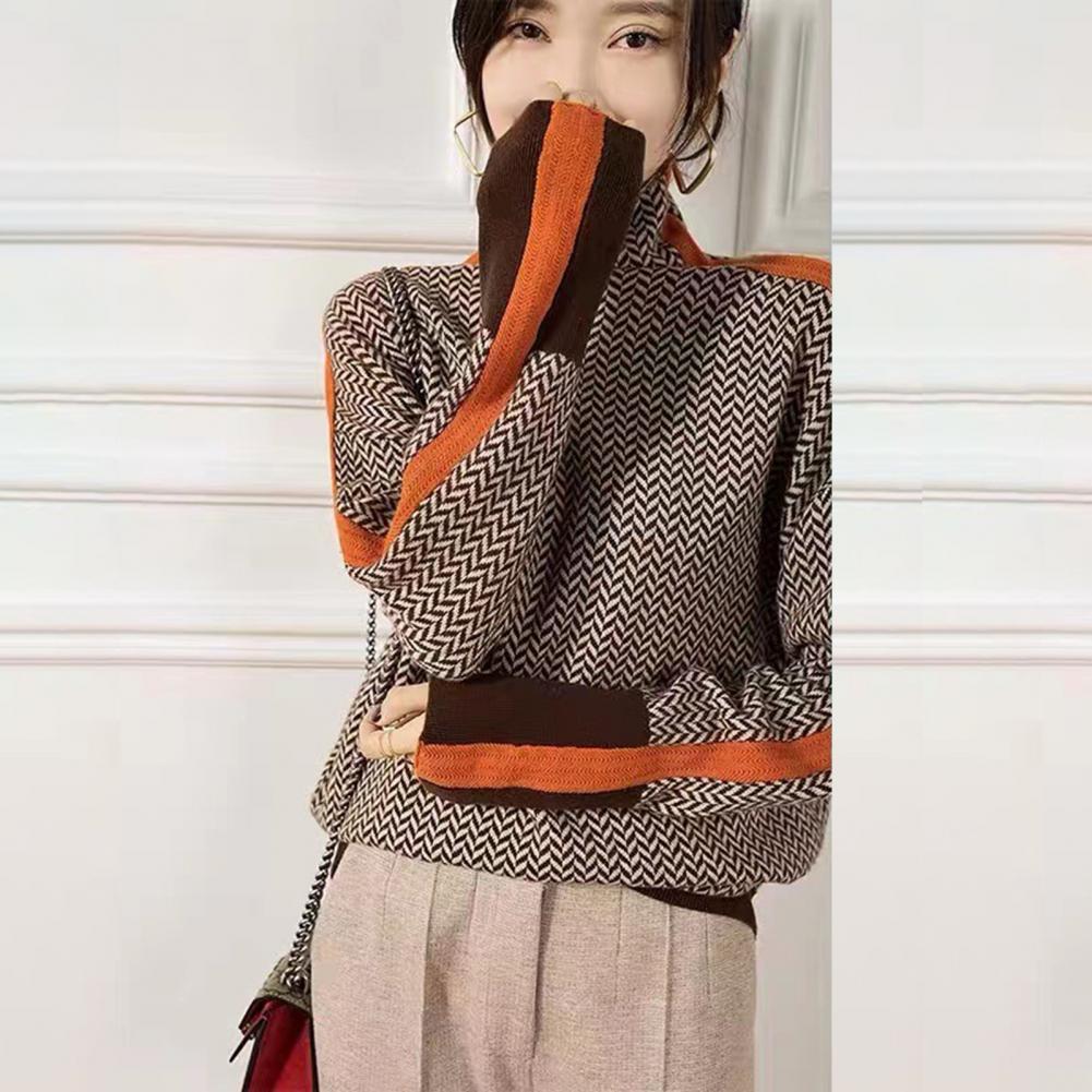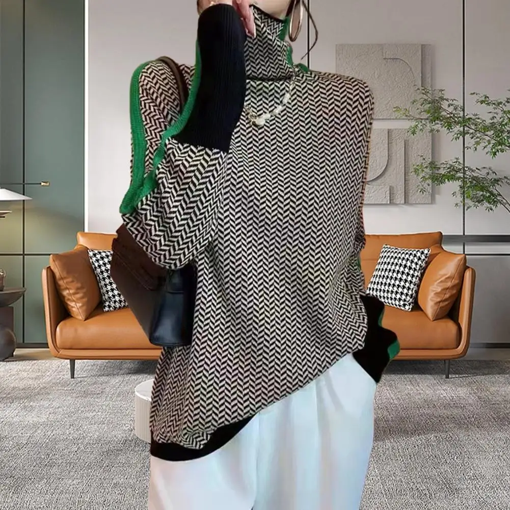 Loose Fit Women Sweater Lightweight Fabric Sweater Contrast Color Knit Sweater Stylish High Collar Long Sleeve Design for Women
