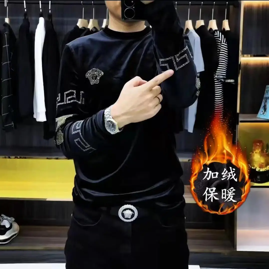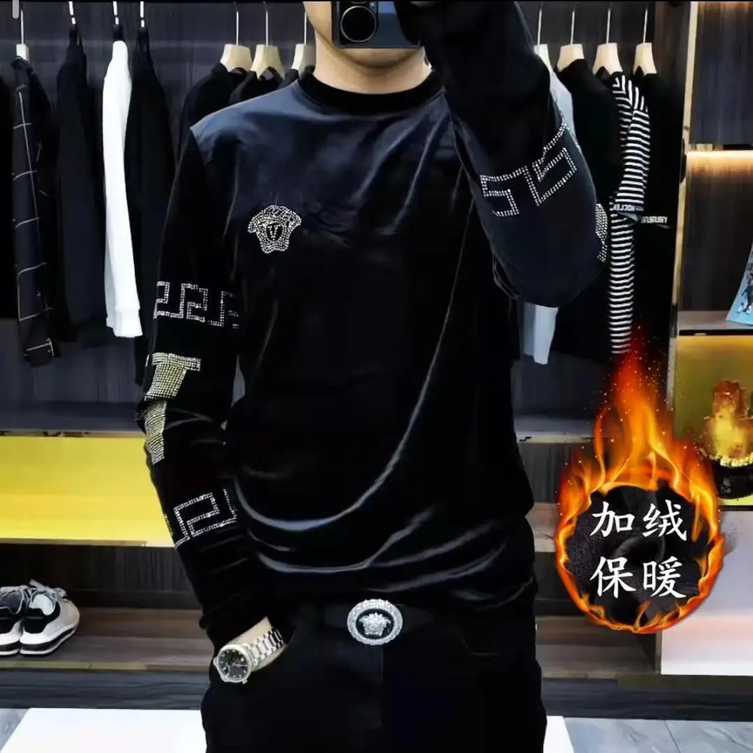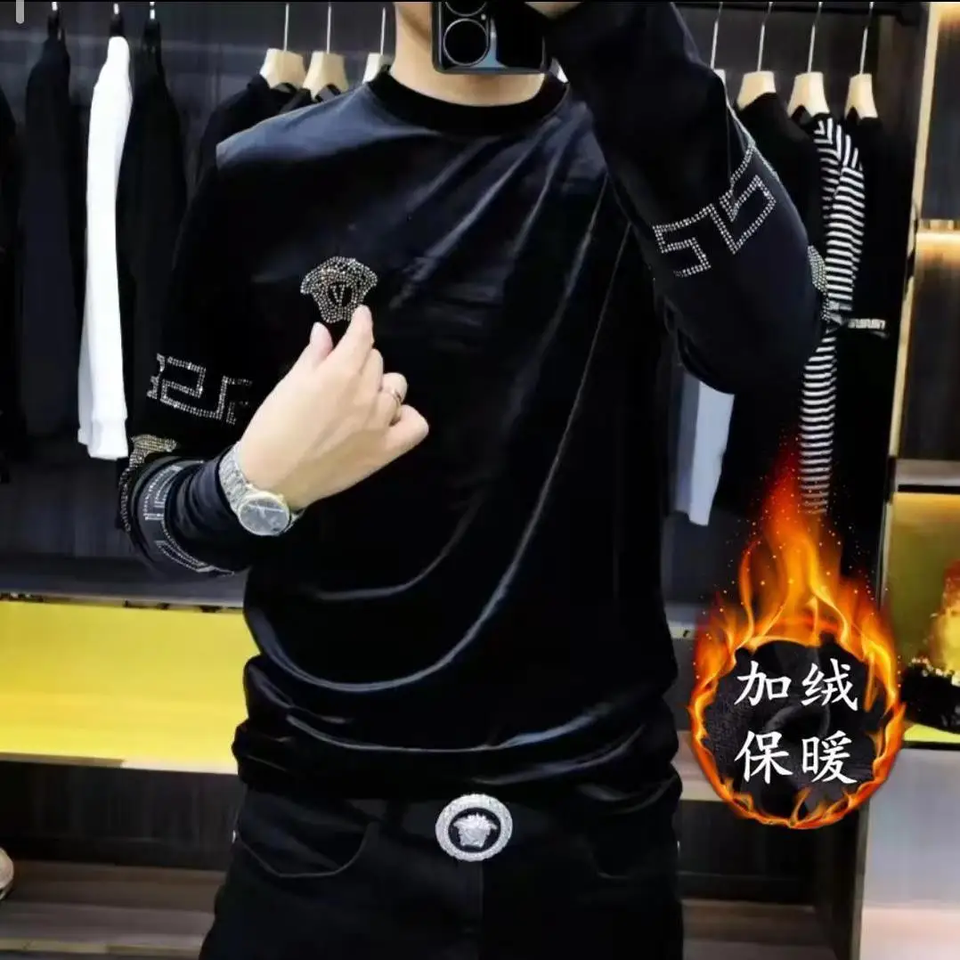 Men’s High-end New Trend Velvet Hoodie Men’s Long Sleeved T-shirt with Added Velvet Insulation Base