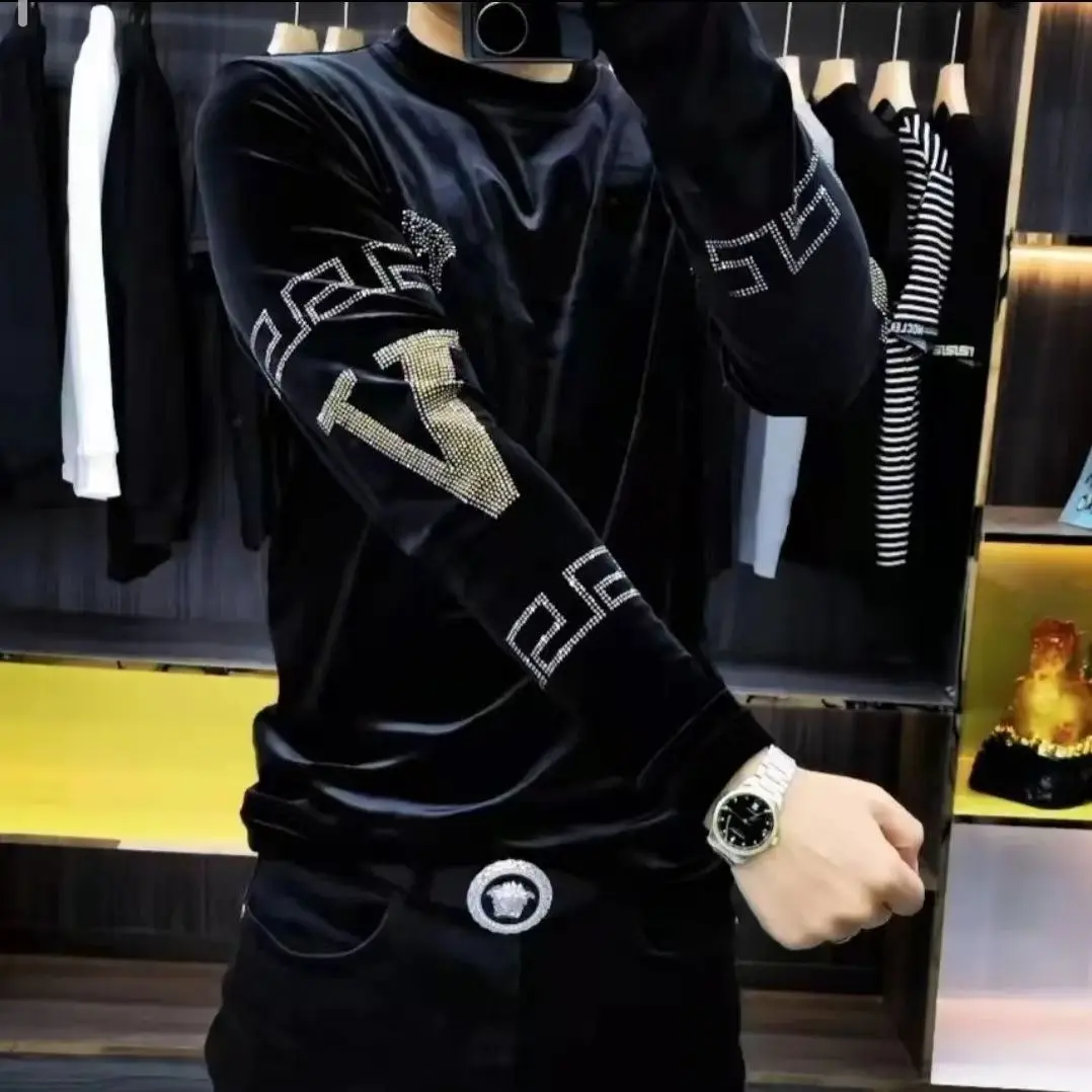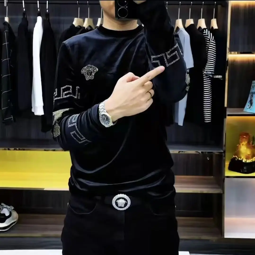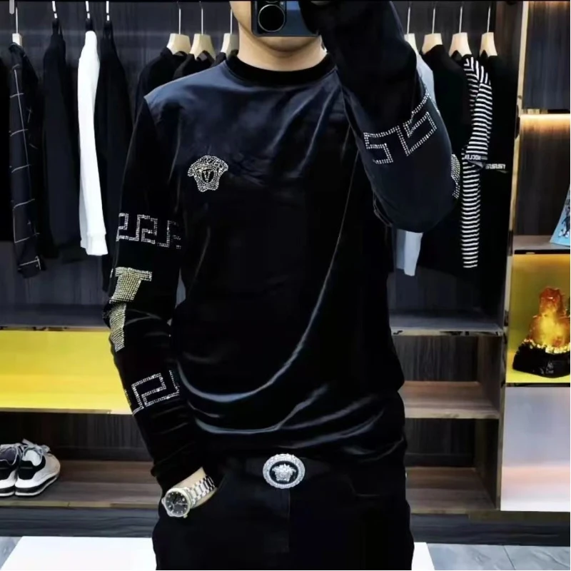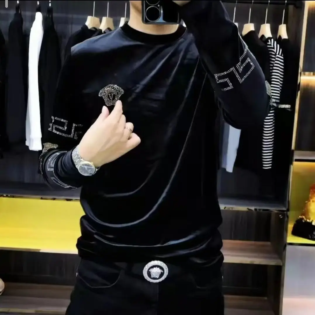 Men’s High-end New Trend Velvet Hoodie Men’s Long Sleeved T-shirt with Added Velvet Insulation Base