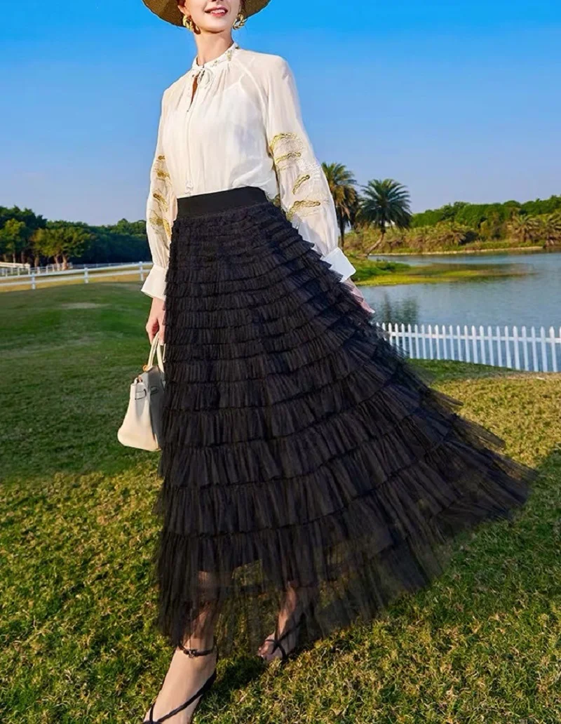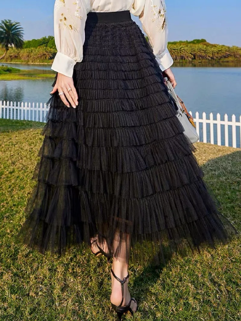 Size: one size fits most figures of waist 60-92 cm (23"-36"). The skirt waist is elastic. The tulle layer’s longest length is around 87 cm(34.25")