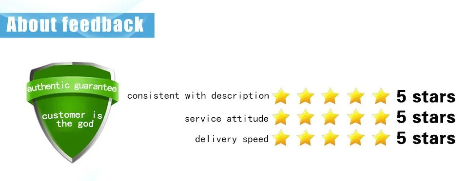1. If you are satisfied with our products and services, please leave uspositive feedback and 5 stars,and5 starsfor thedetailed ratingof your order.Once you show us thescreenshotof both5 stars, we will give youDISCOUNTfor your next order.