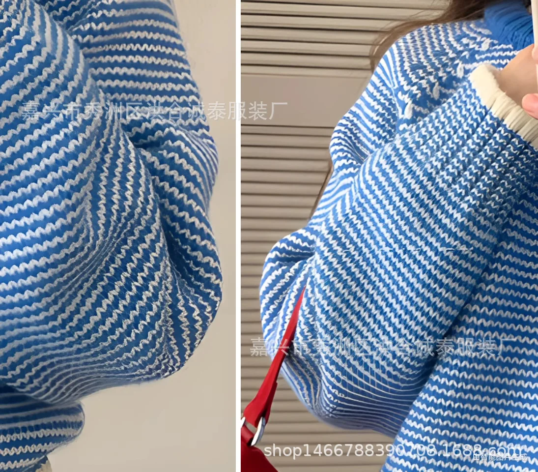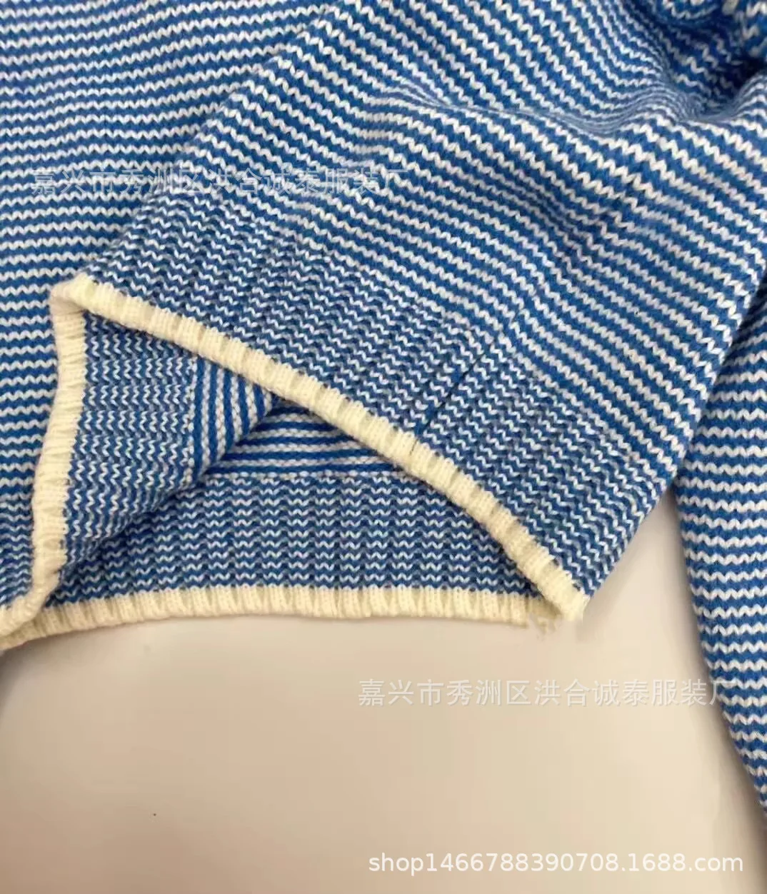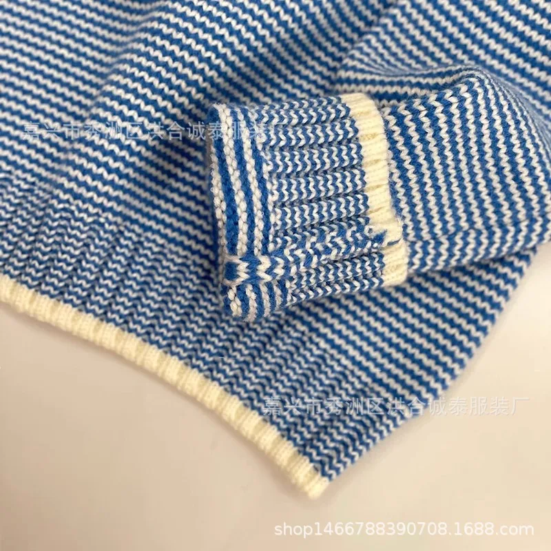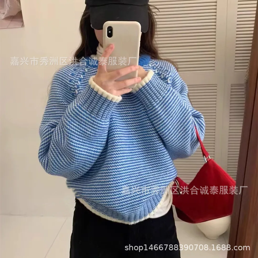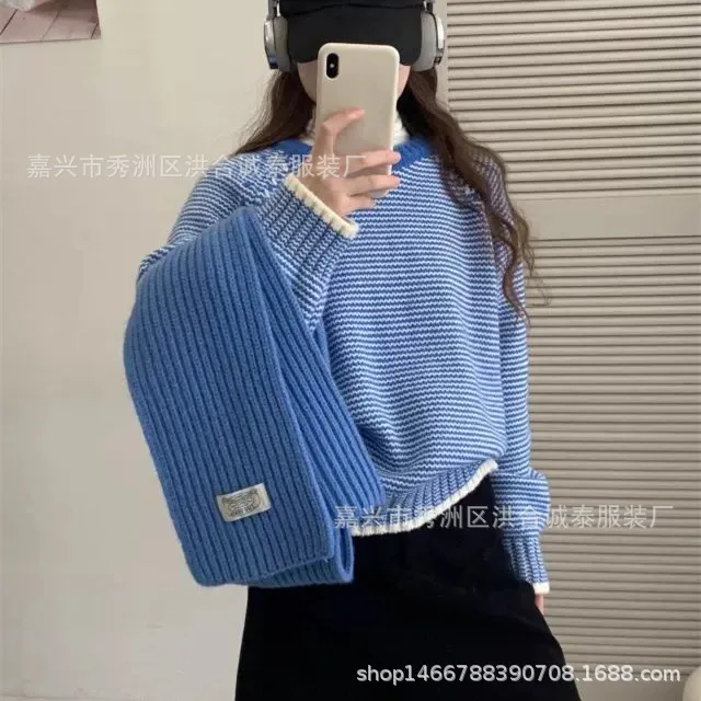 Pullovers Sweaters Women Top Knitted Blue Round Neck Casual Loose Jumpers Spring Y2k Tops Elegant Striped Knit Streetwear