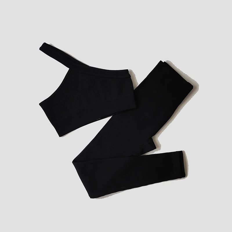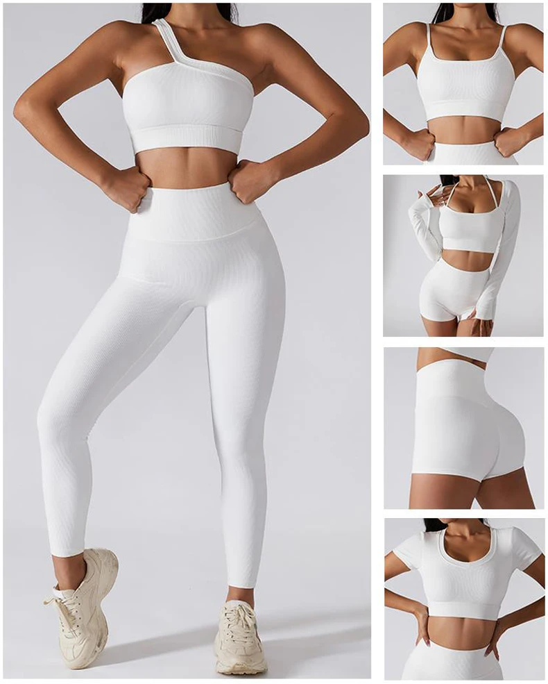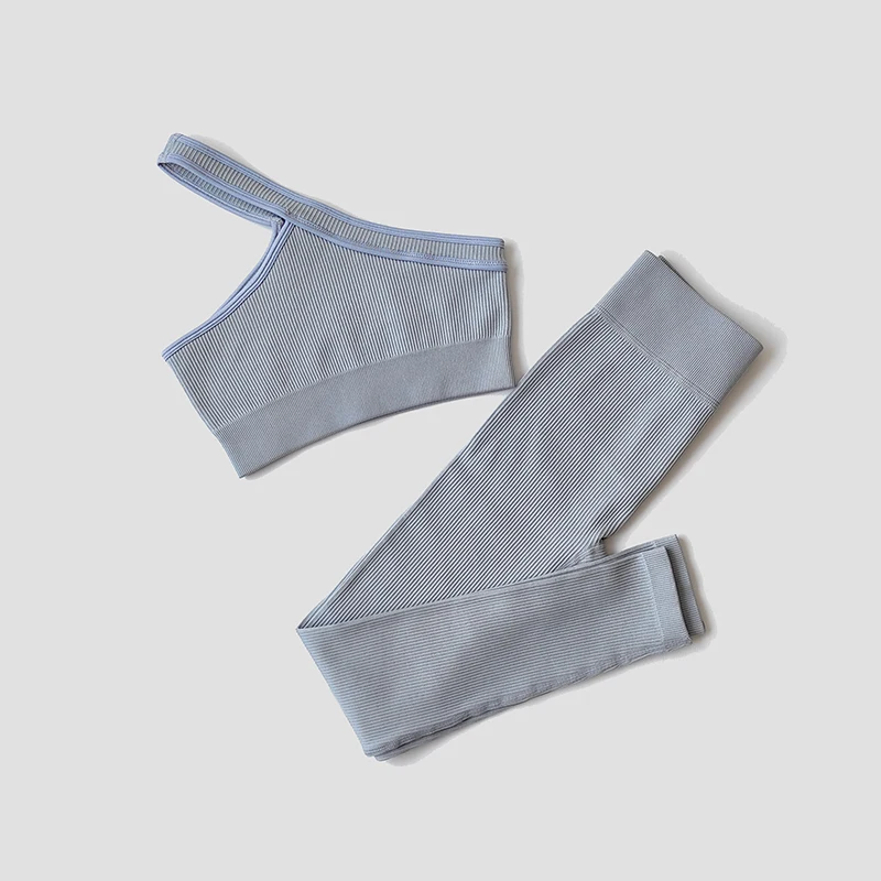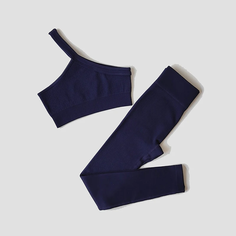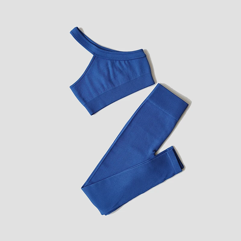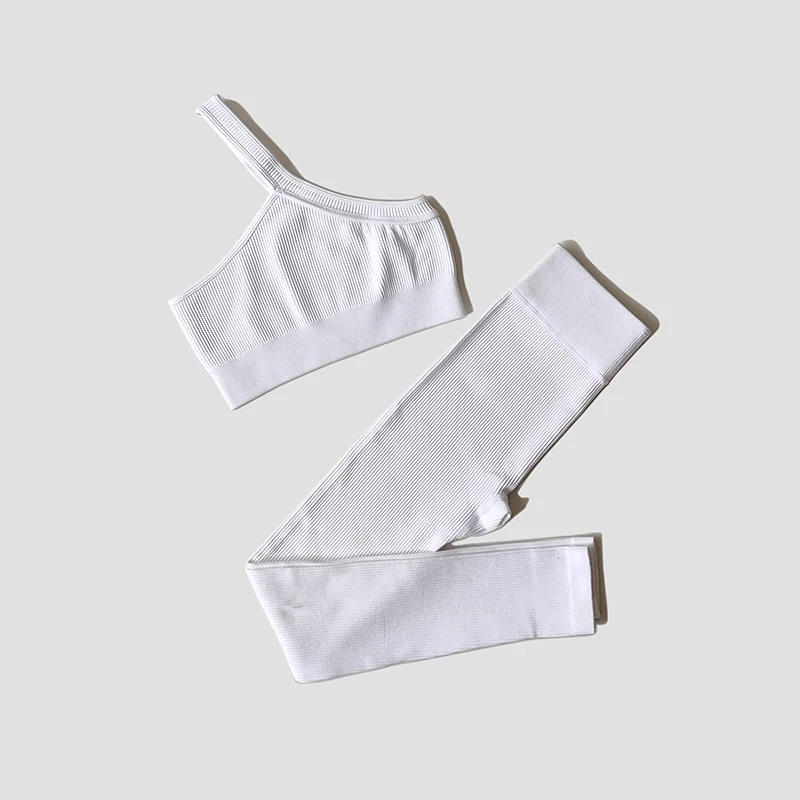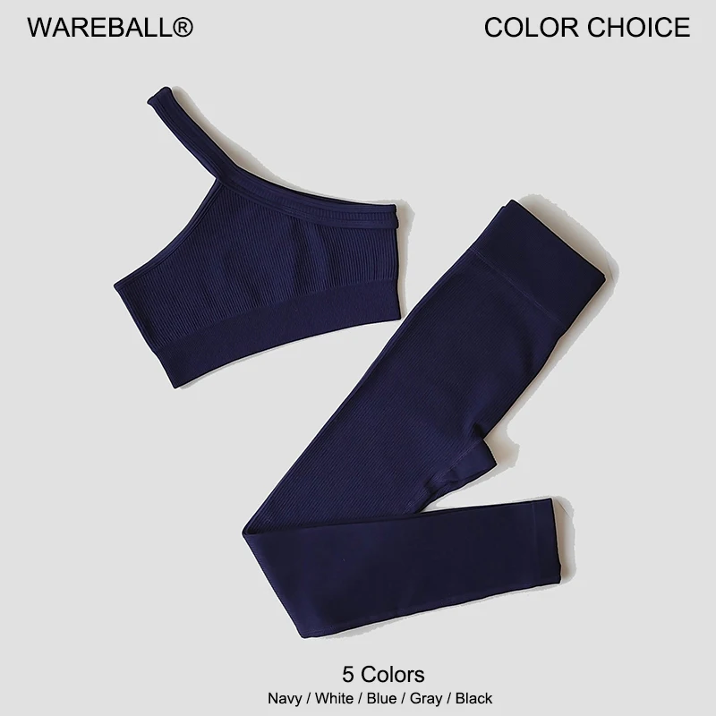 WAREBALL Seamless Women Yoga Set Workout Sportswear Gym Ribbed Fitness One Shoulder Crop Top Bra High Waist Leggings Sports Suits