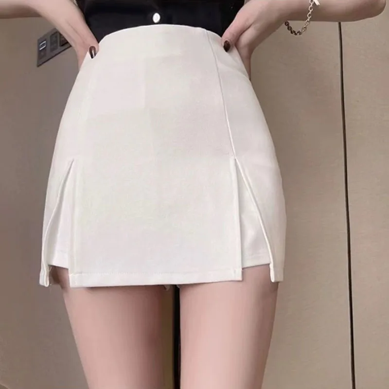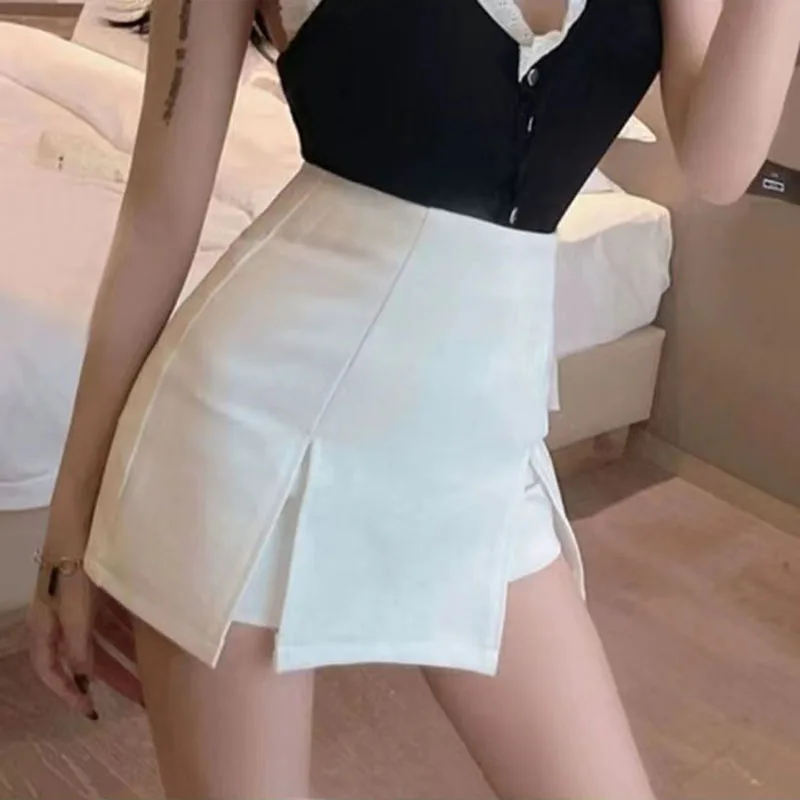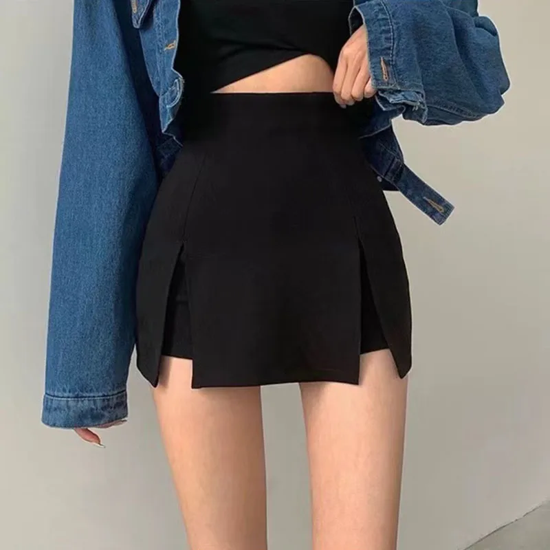 Sexy Split Mini Skirt Women Korean High Waist Streetwear Casual Black Short Skirts Fashion Office Lady All-Match A Line Skirts