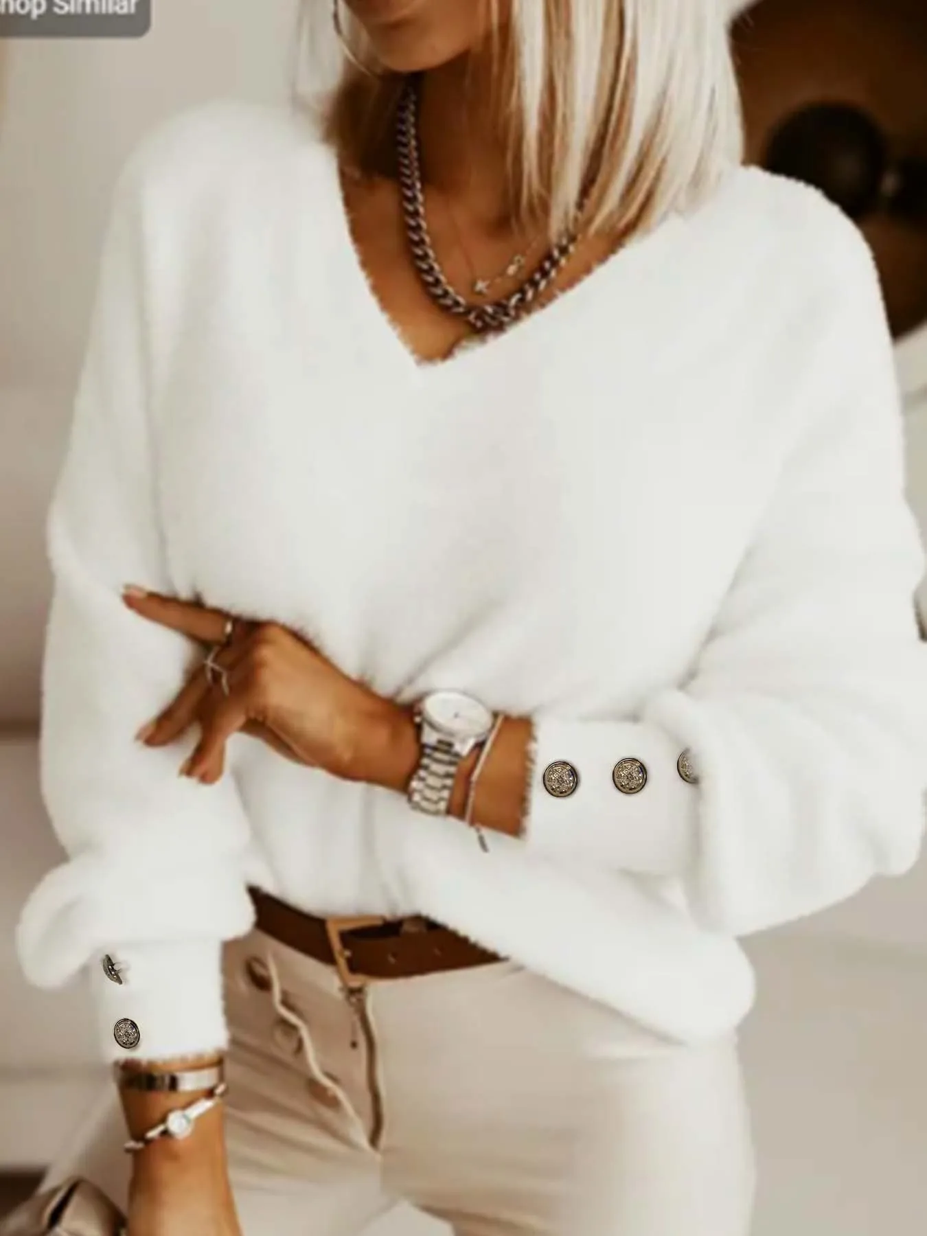 Women Pullover Sweater Winter Long Sleeve Knitted Sweater Women V-neck Jumper Sweaters For Women Button Loose Casual Pullover