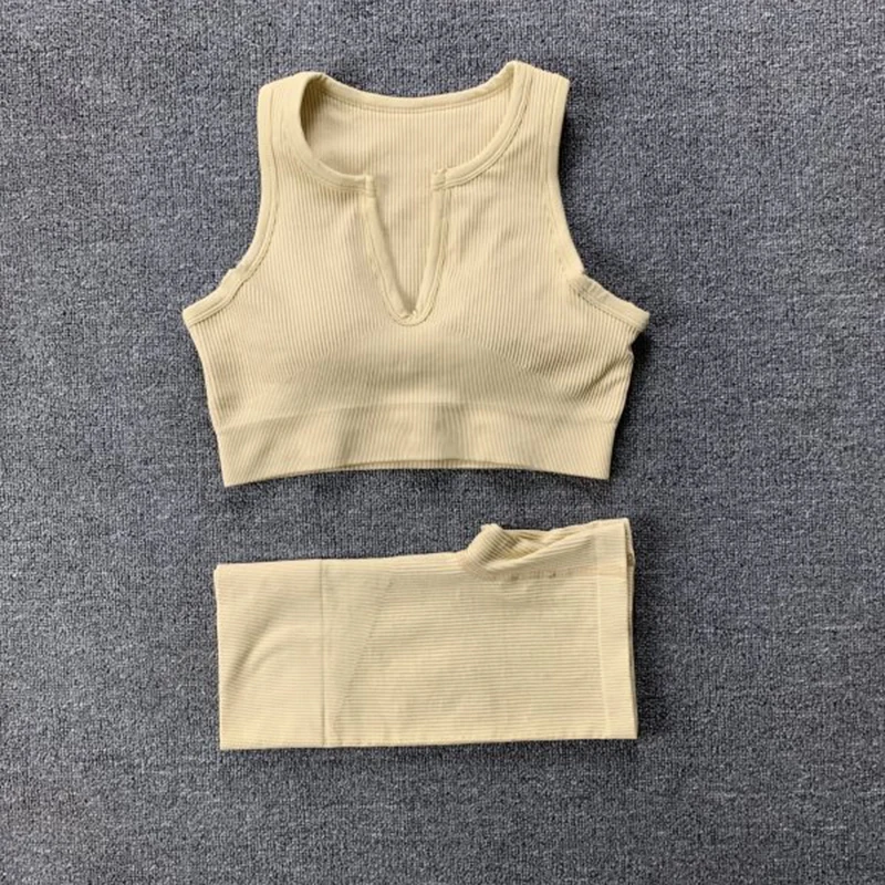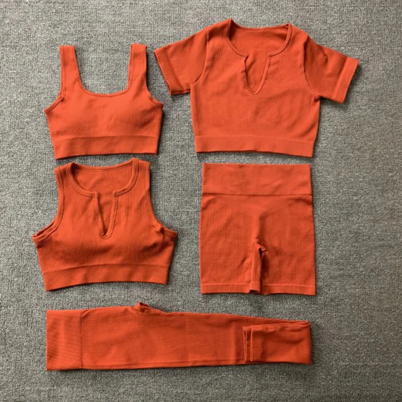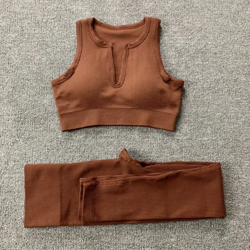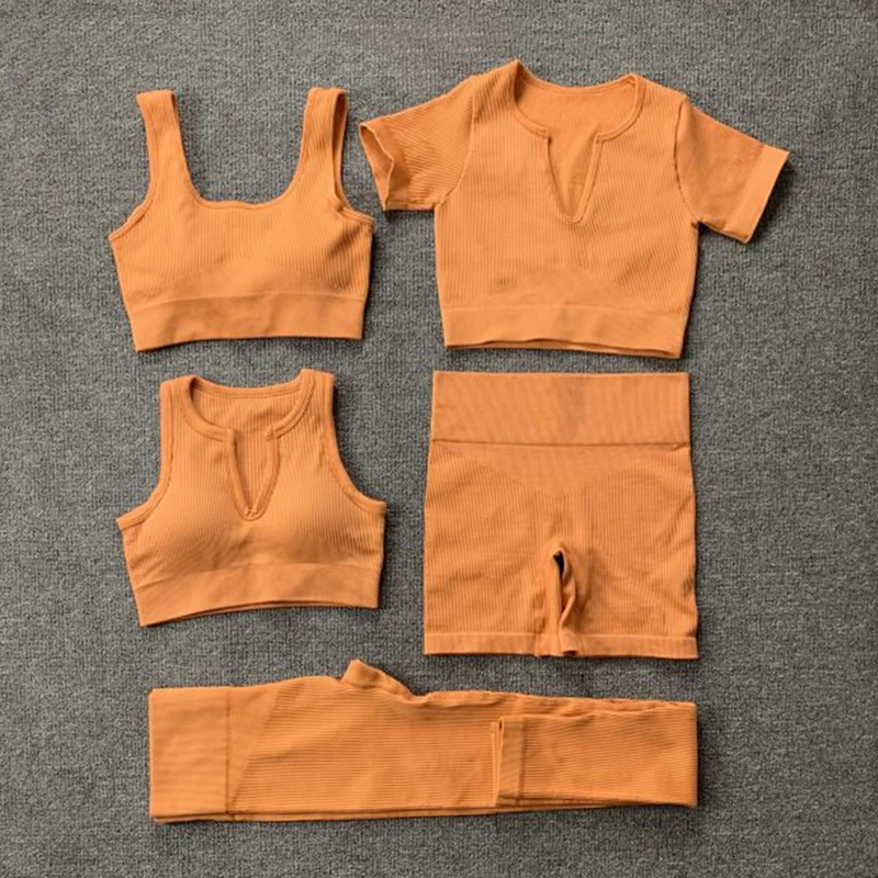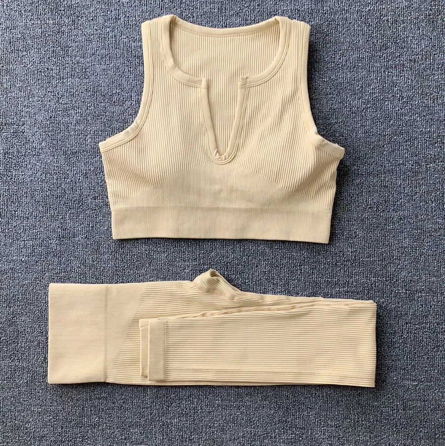 Women Seamless Yoga Set Fitness Workout Suits Sport Bra High Waist Leggings Sexy Deep-V Gym Clothing 2021 New Sportswear