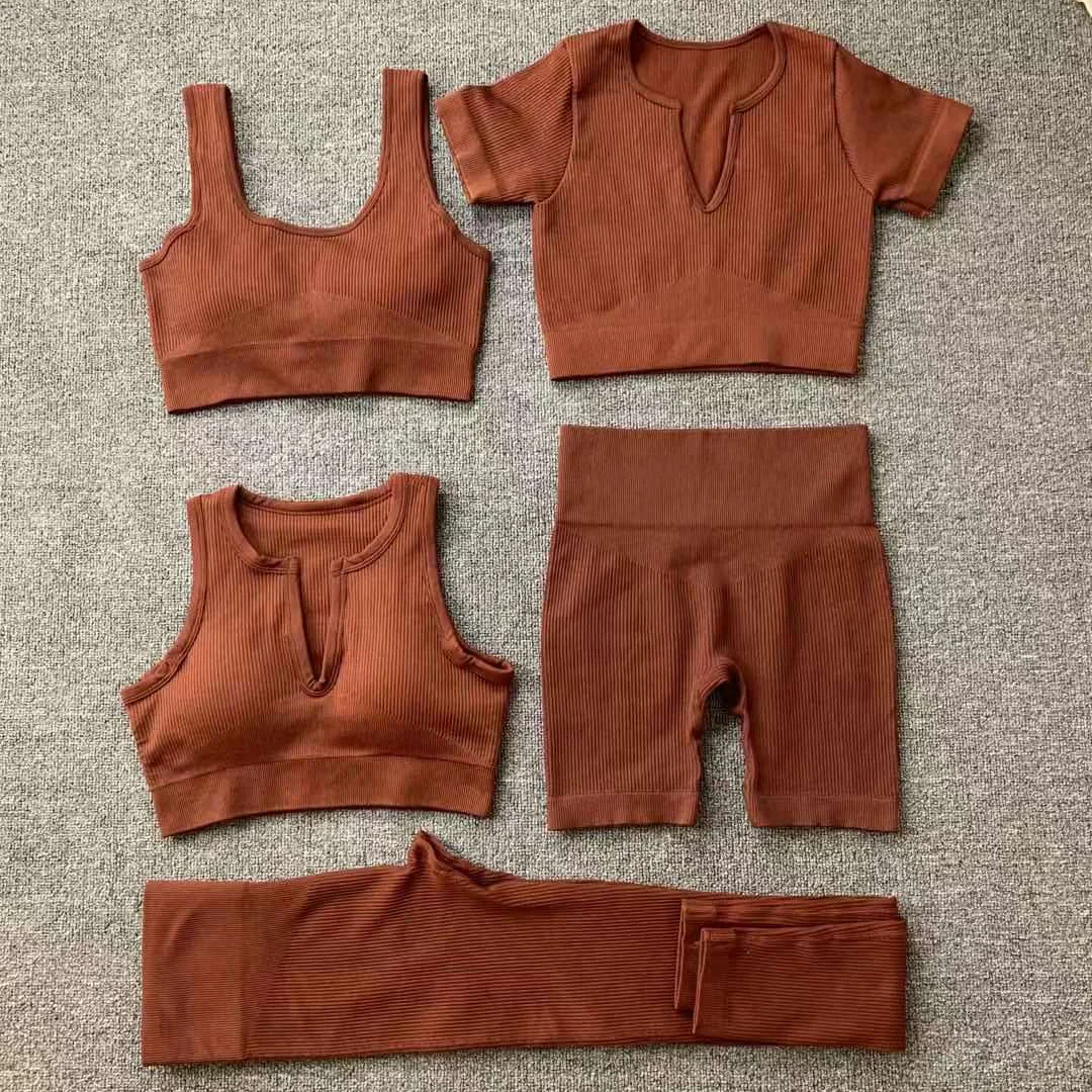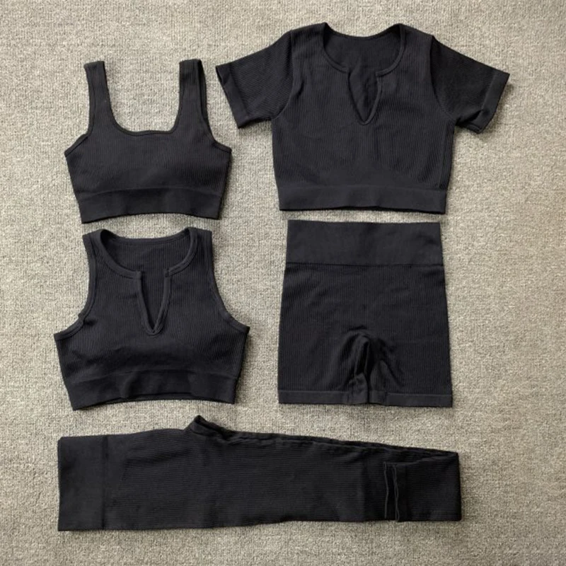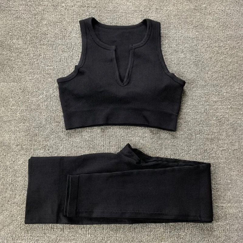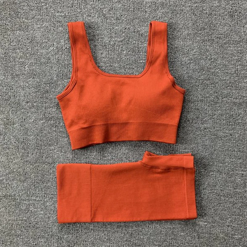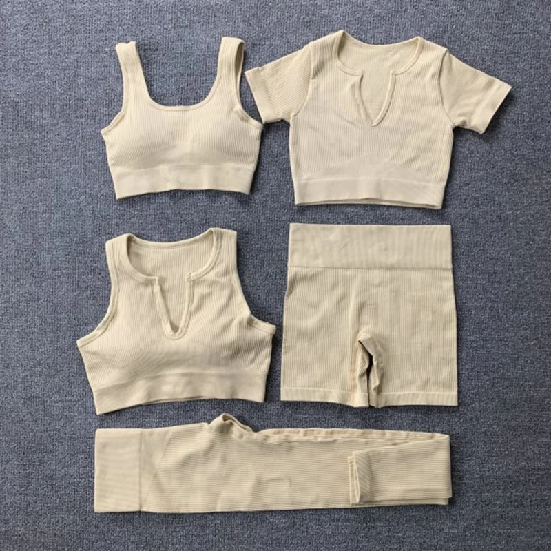 Women Seamless Yoga Set Fitness Workout Suits Sport Bra High Waist Leggings Sexy Deep-V Gym Clothing 2021 New Sportswear