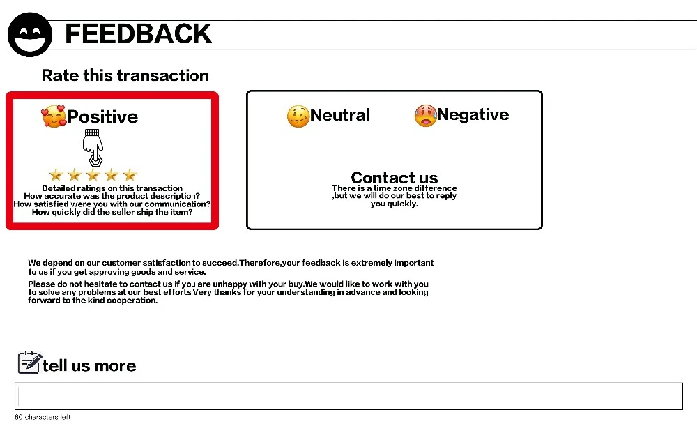 1.If you are satisfied with our products, we sincerely hope that you can leave us a all five stars POSITIVE FEEDBACK.