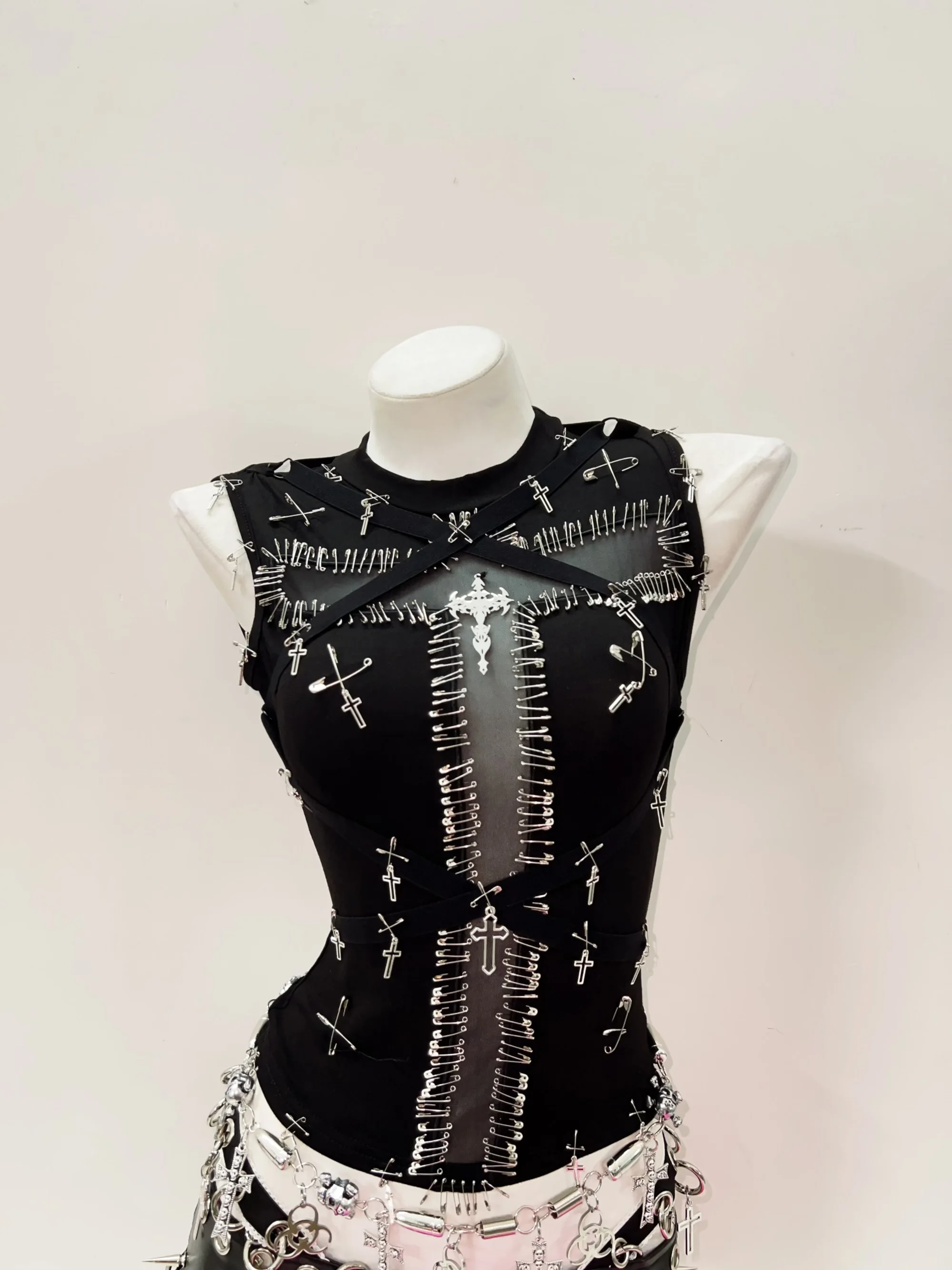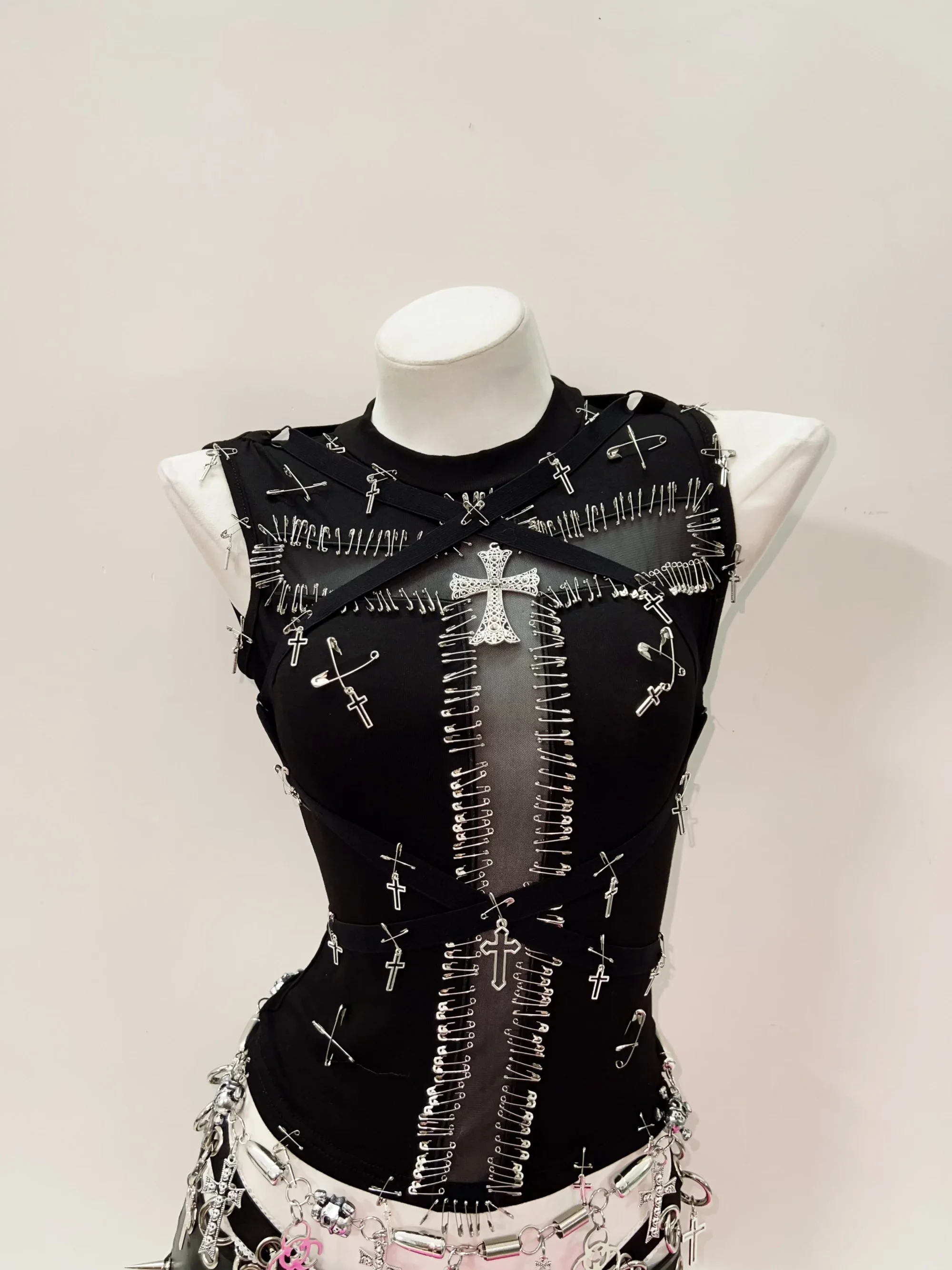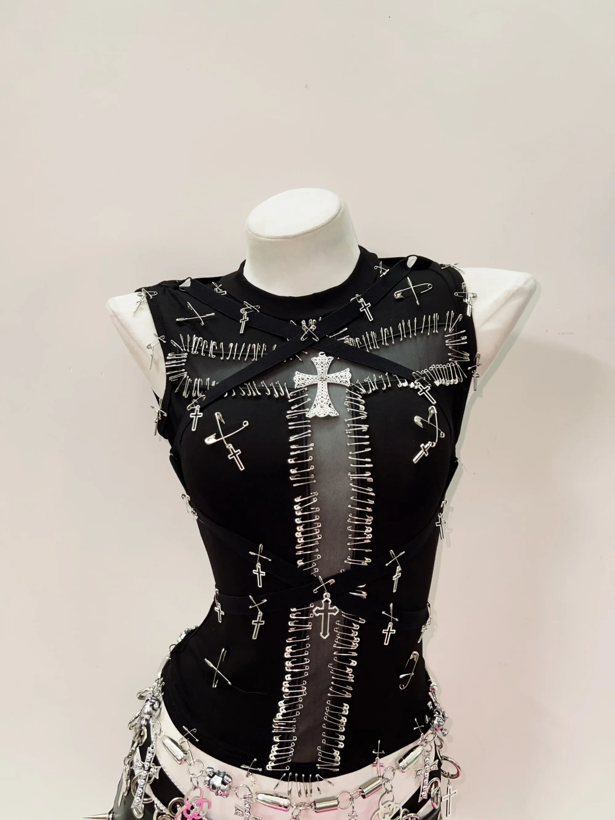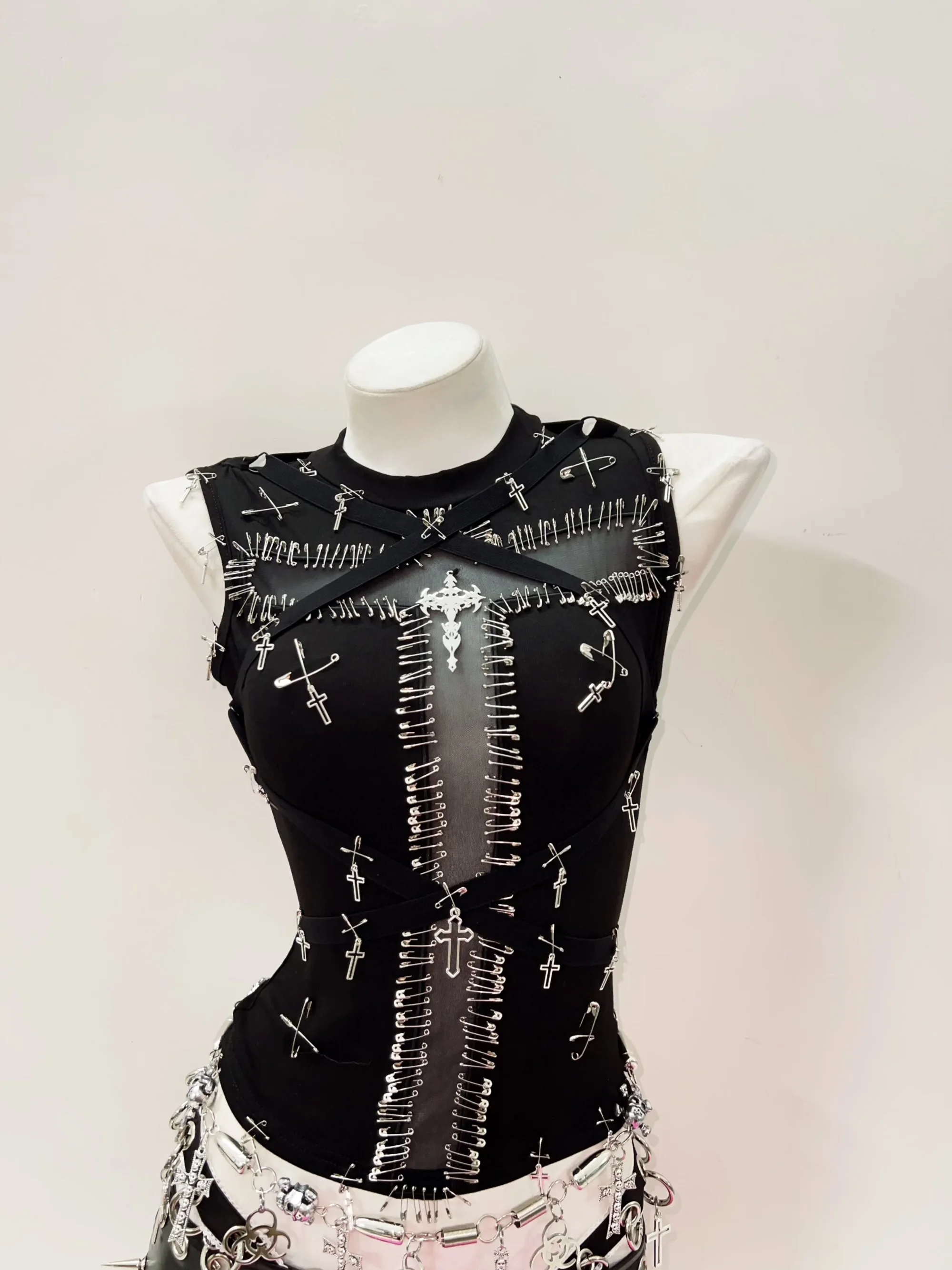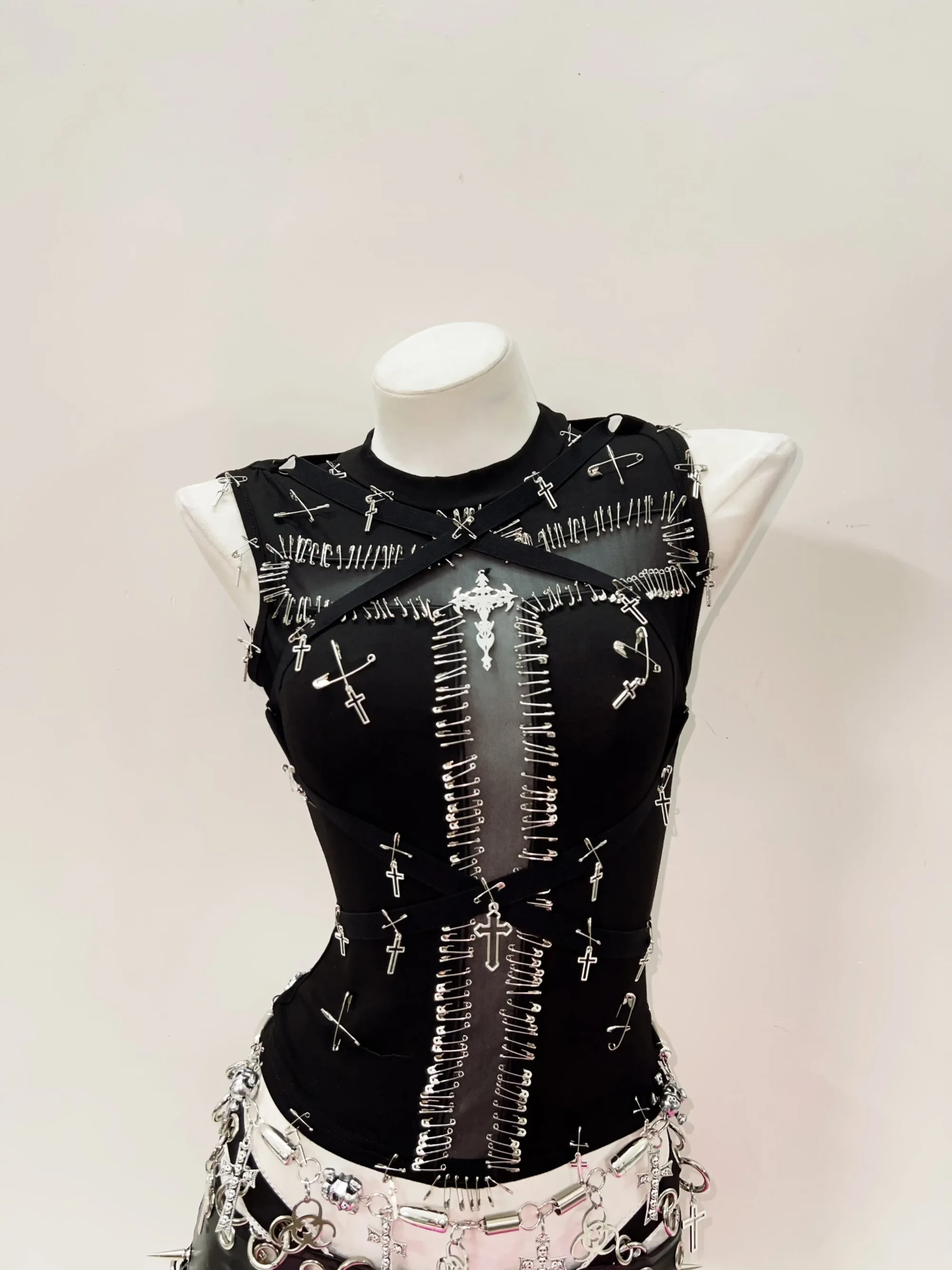 y2k clothes y2k crop top gothic clothes y2k fashion bustier top vintage tops Cross Tank Tops Gothic Tank Tops Punk Tank Tops