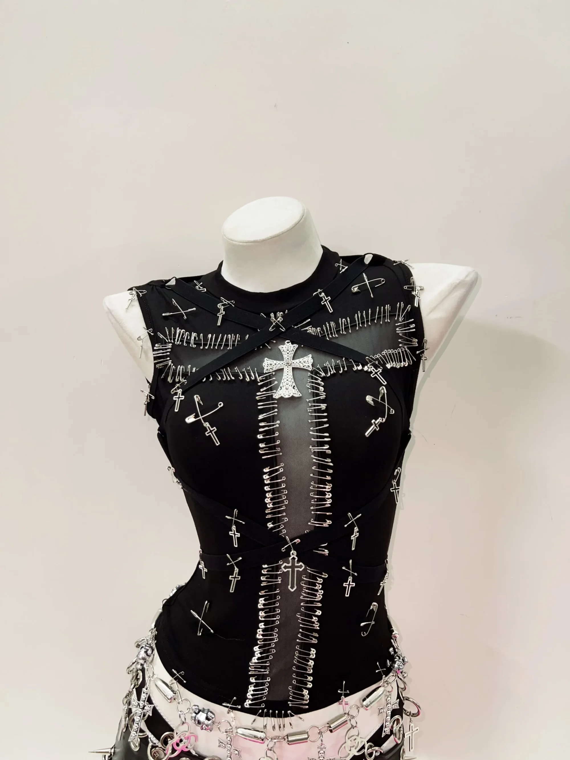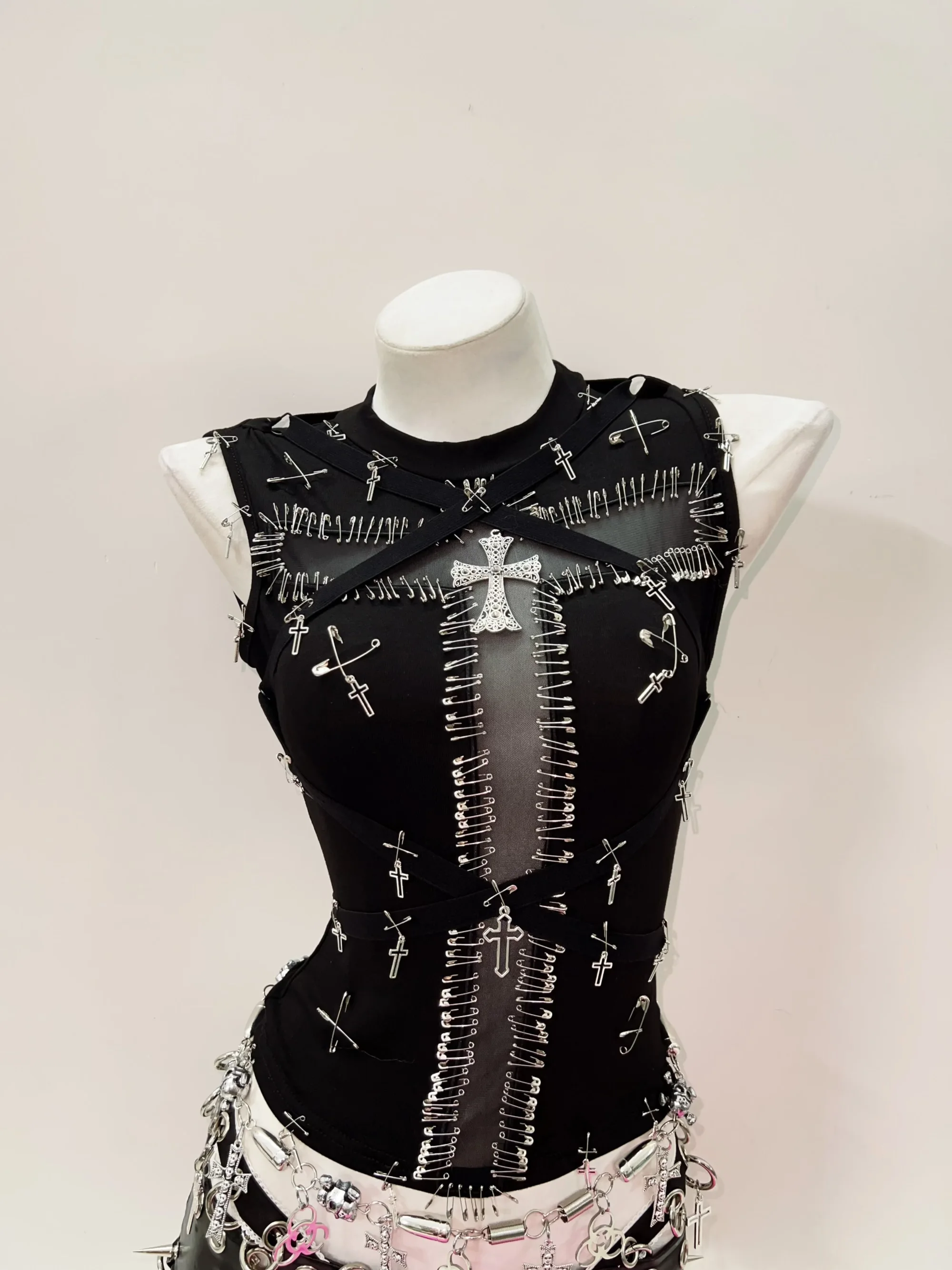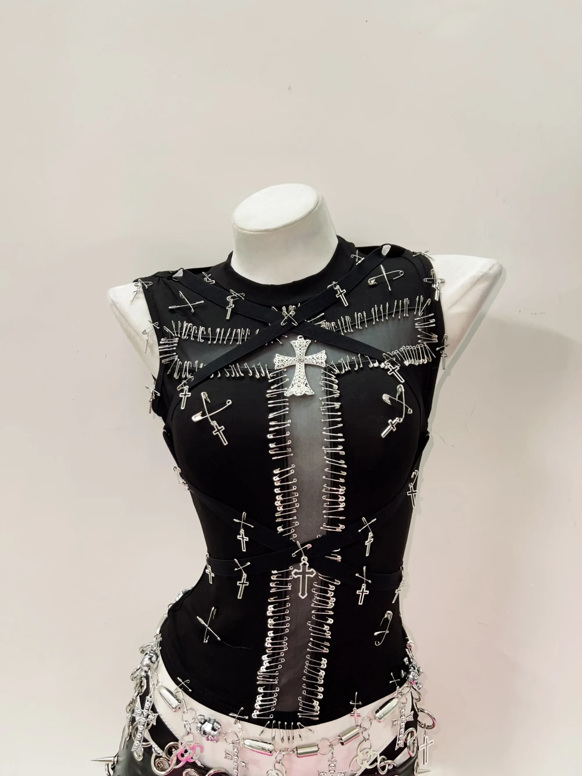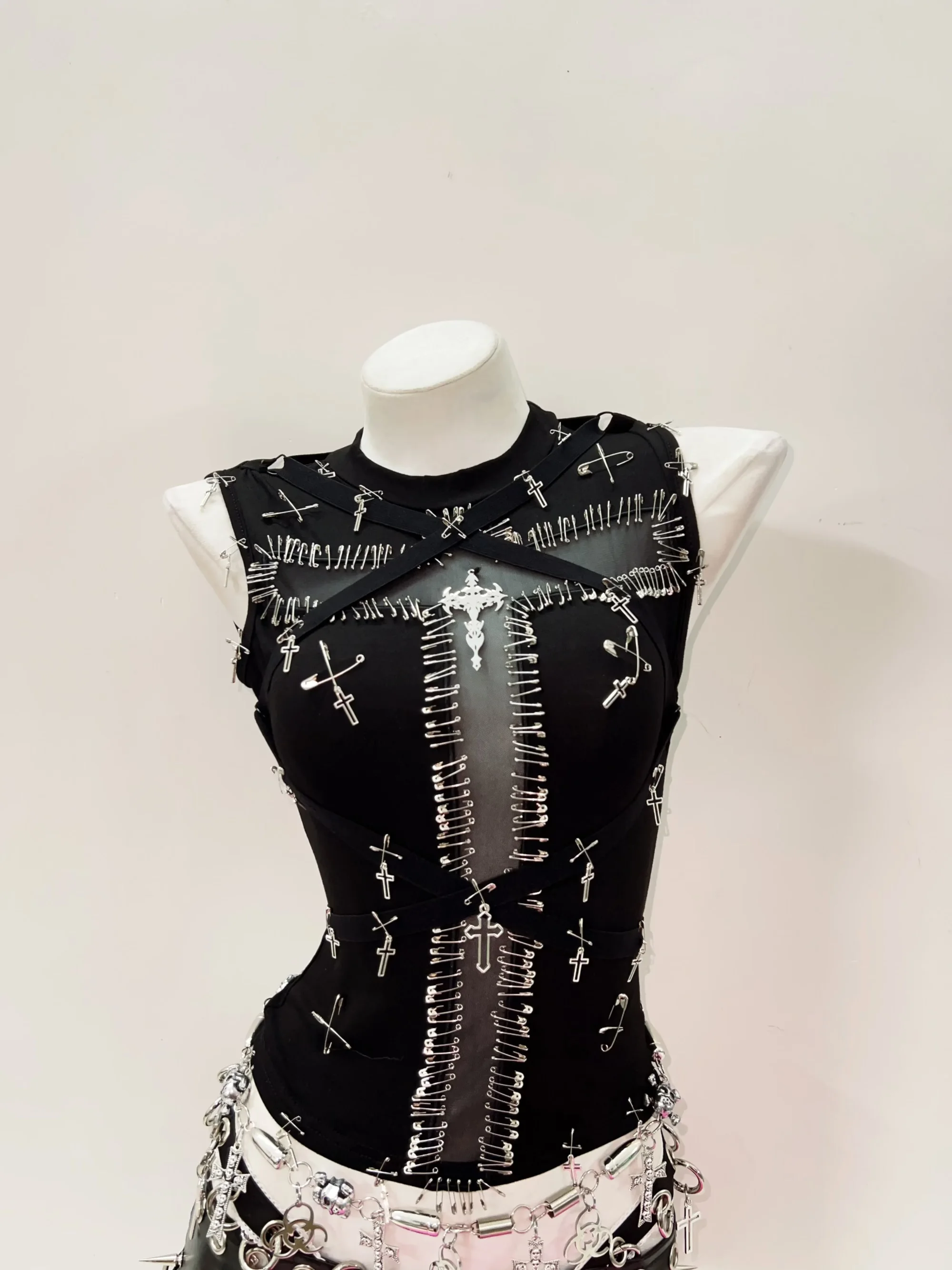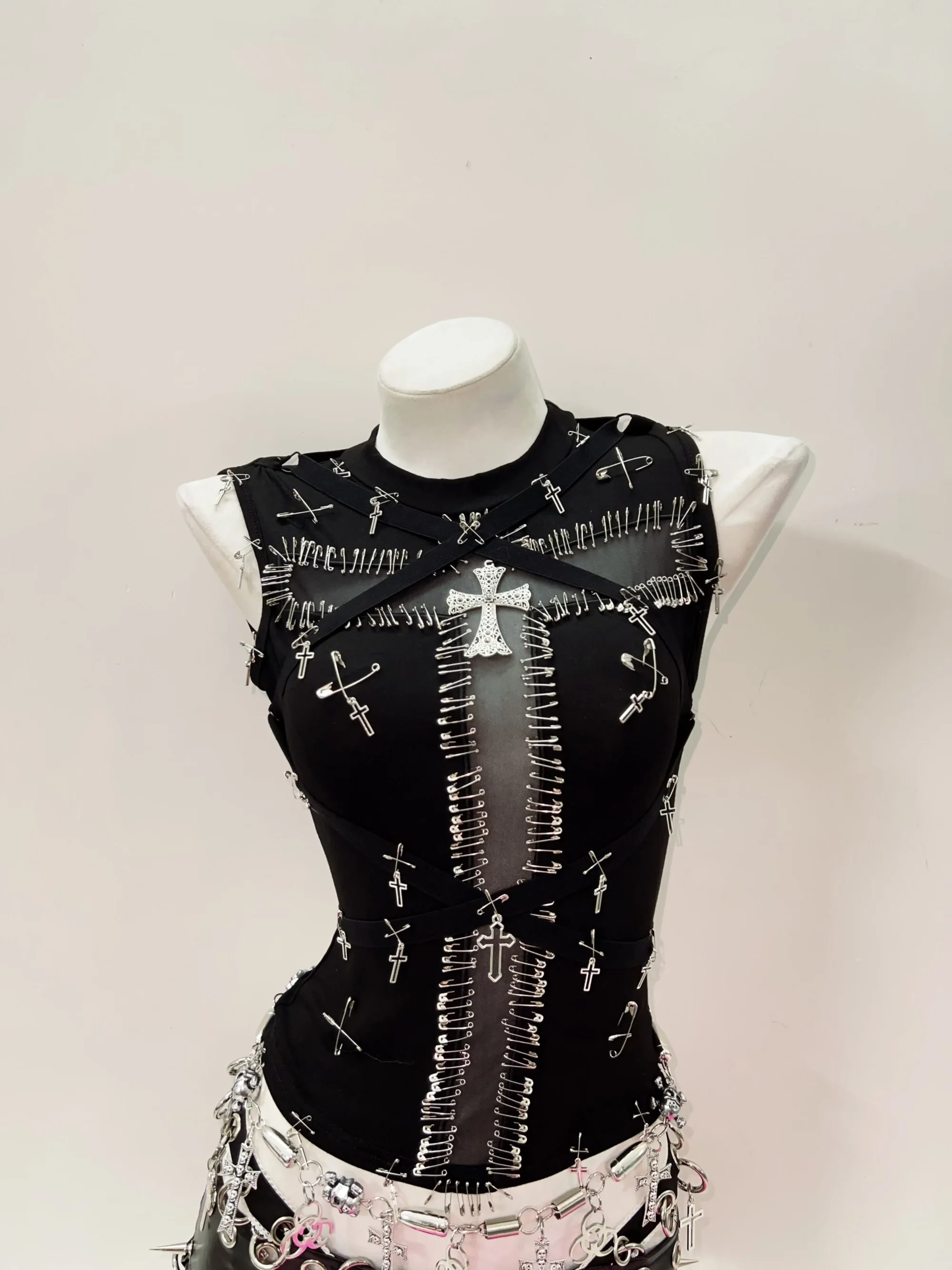 y2k clothes y2k crop top gothic clothes y2k fashion bustier top vintage tops Cross Tank Tops Gothic Tank Tops Punk Tank Tops