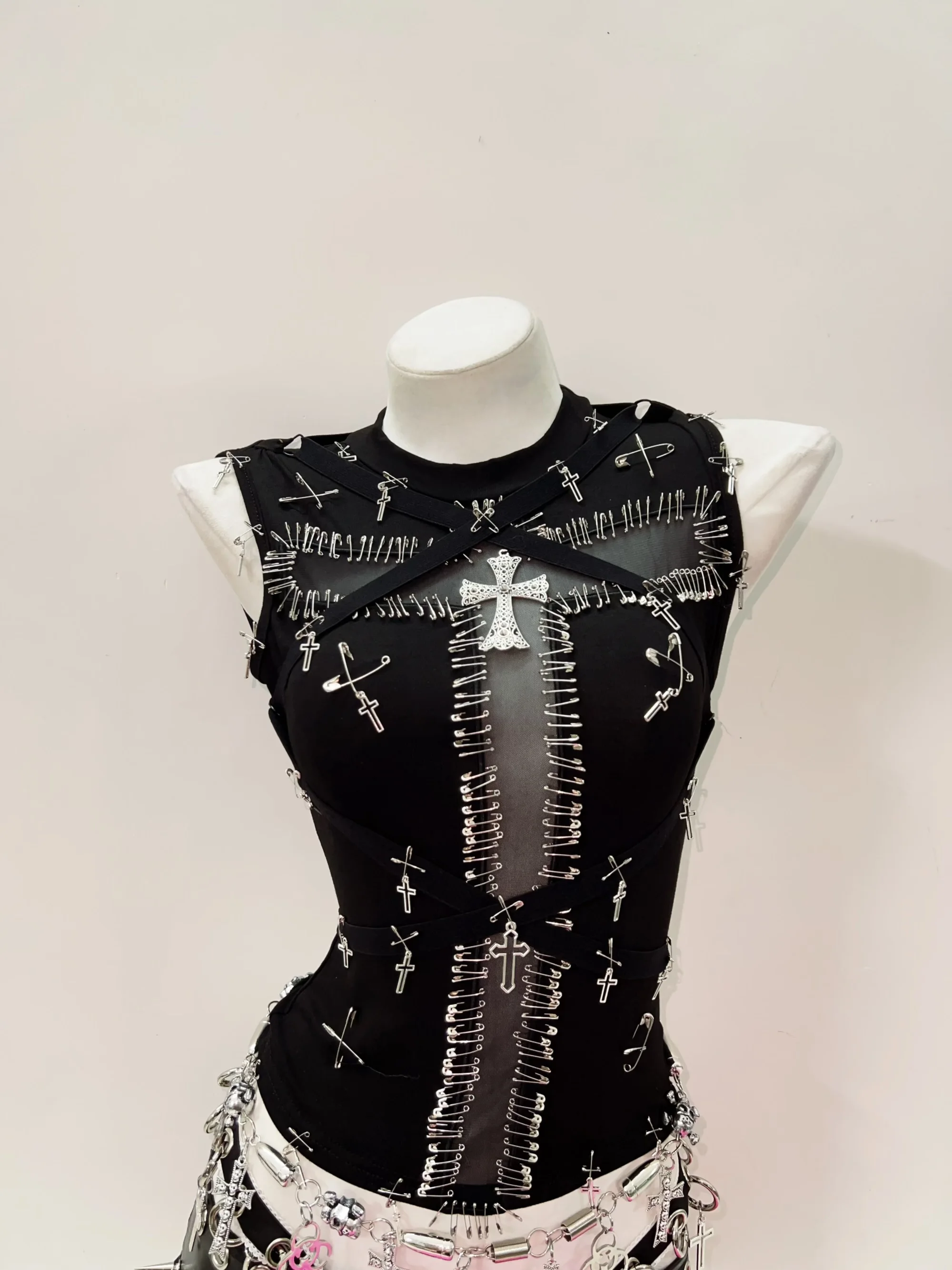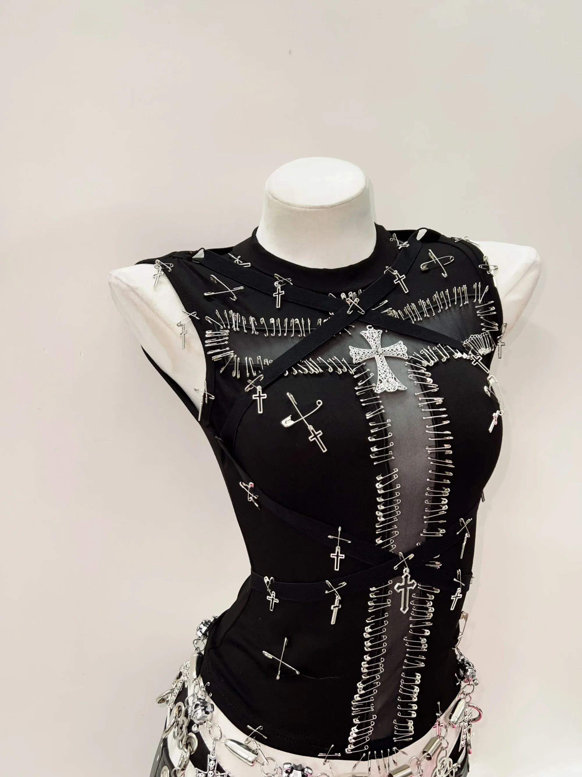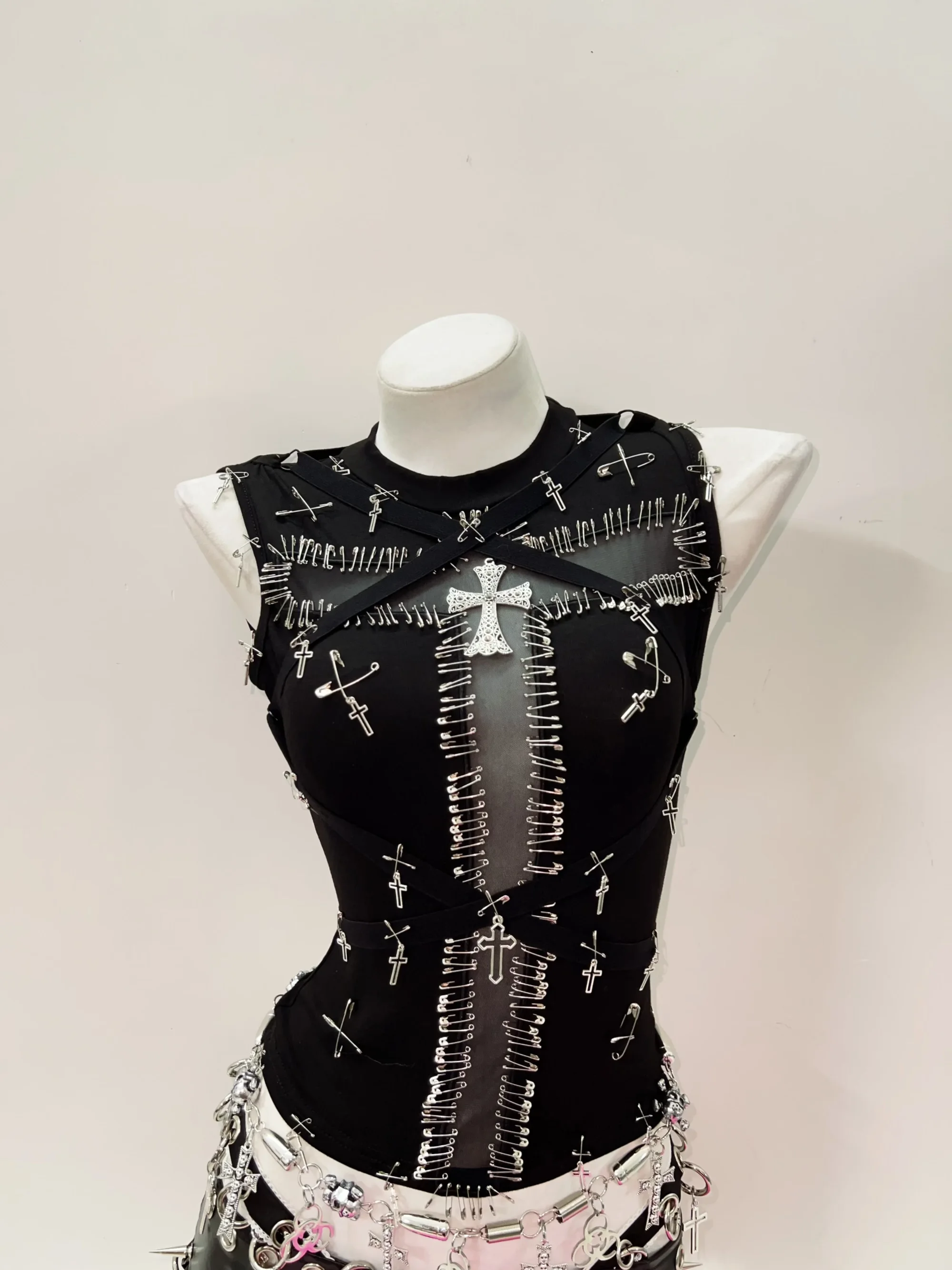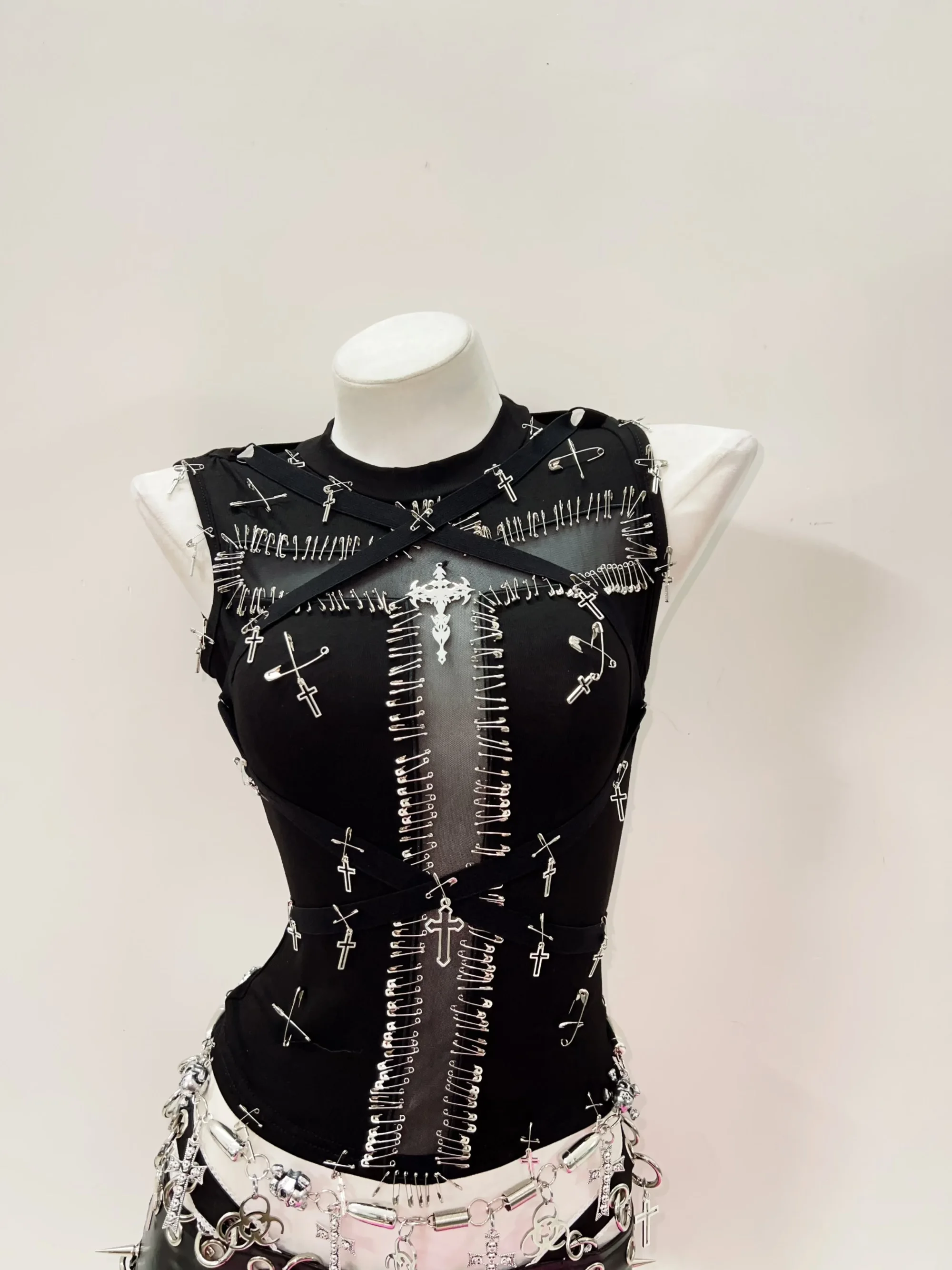 y2k clothes y2k crop top gothic clothes y2k fashion bustier top vintage tops Cross Tank Tops Gothic Tank Tops Punk Tank Tops