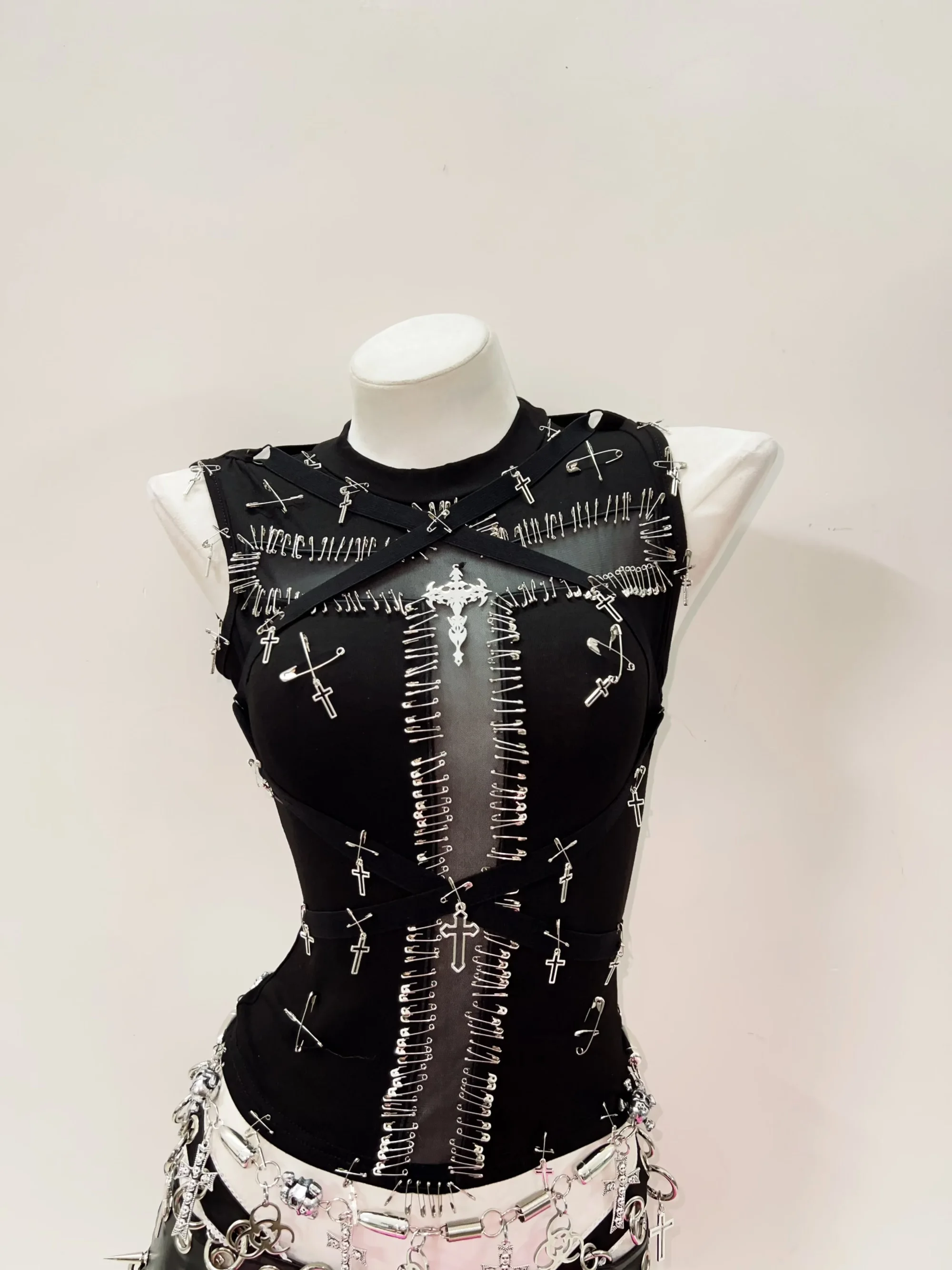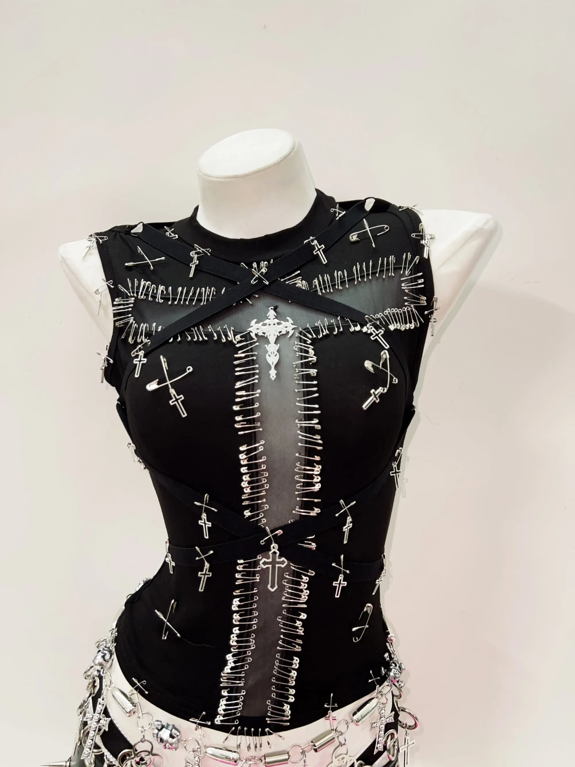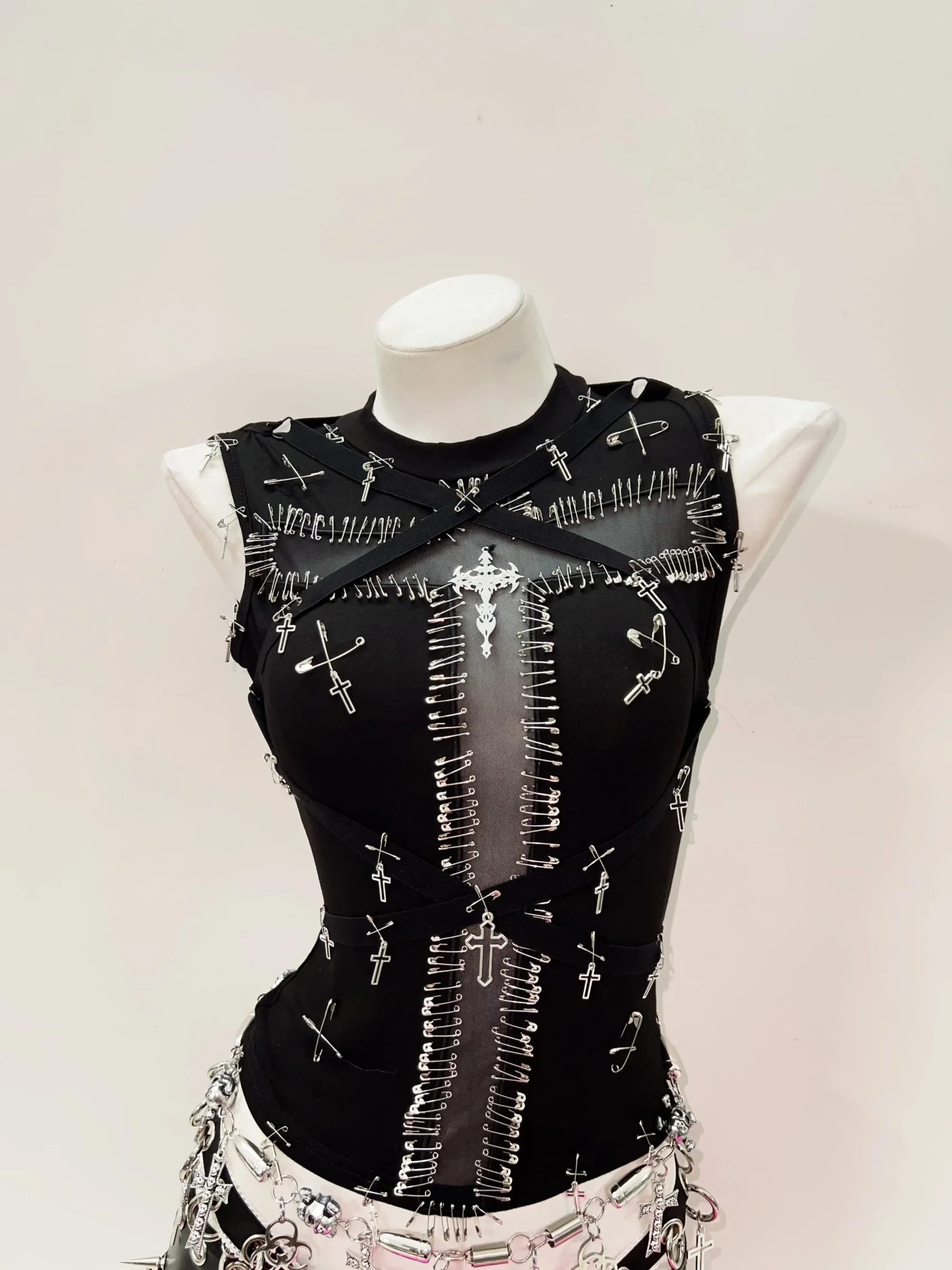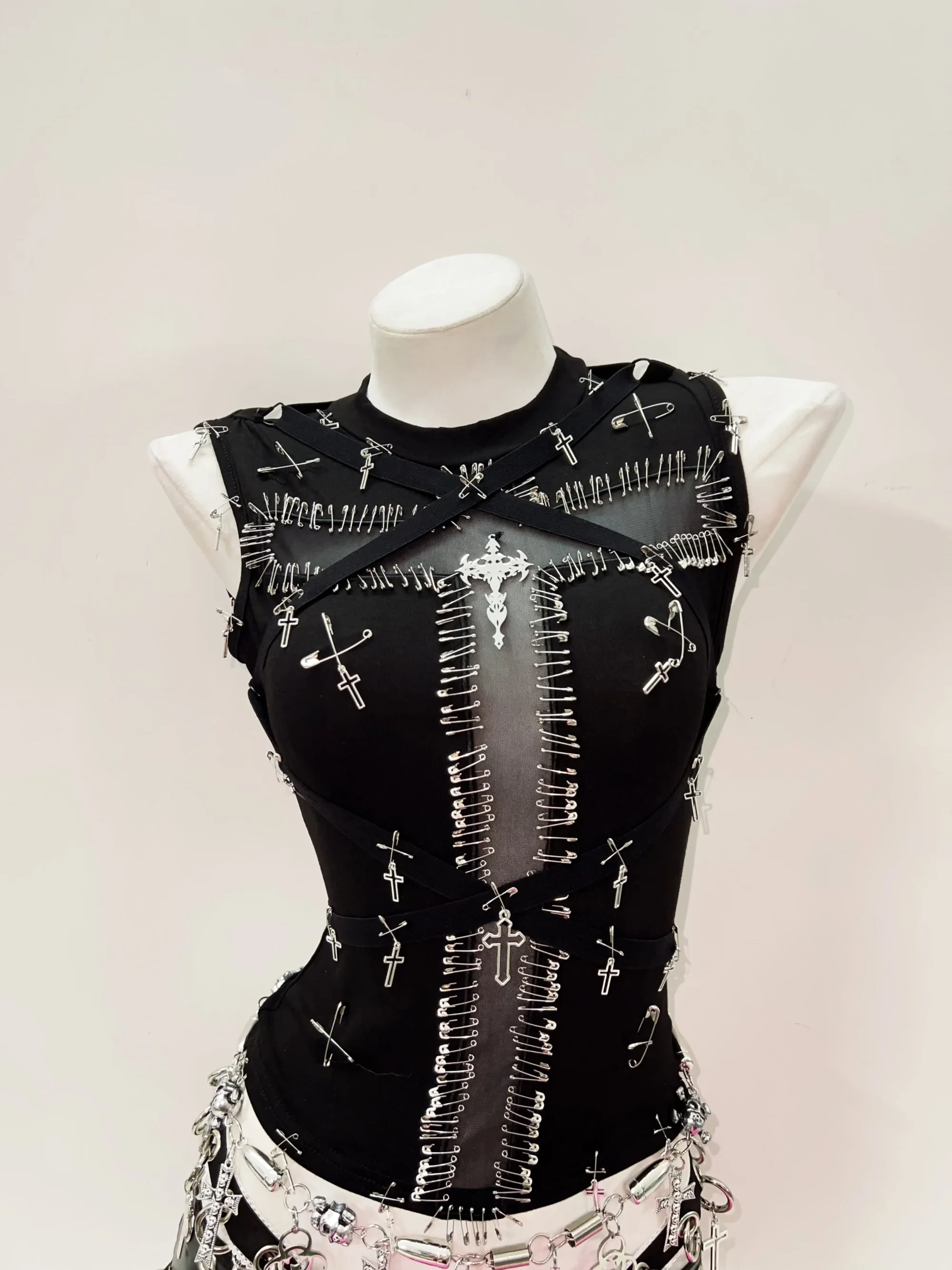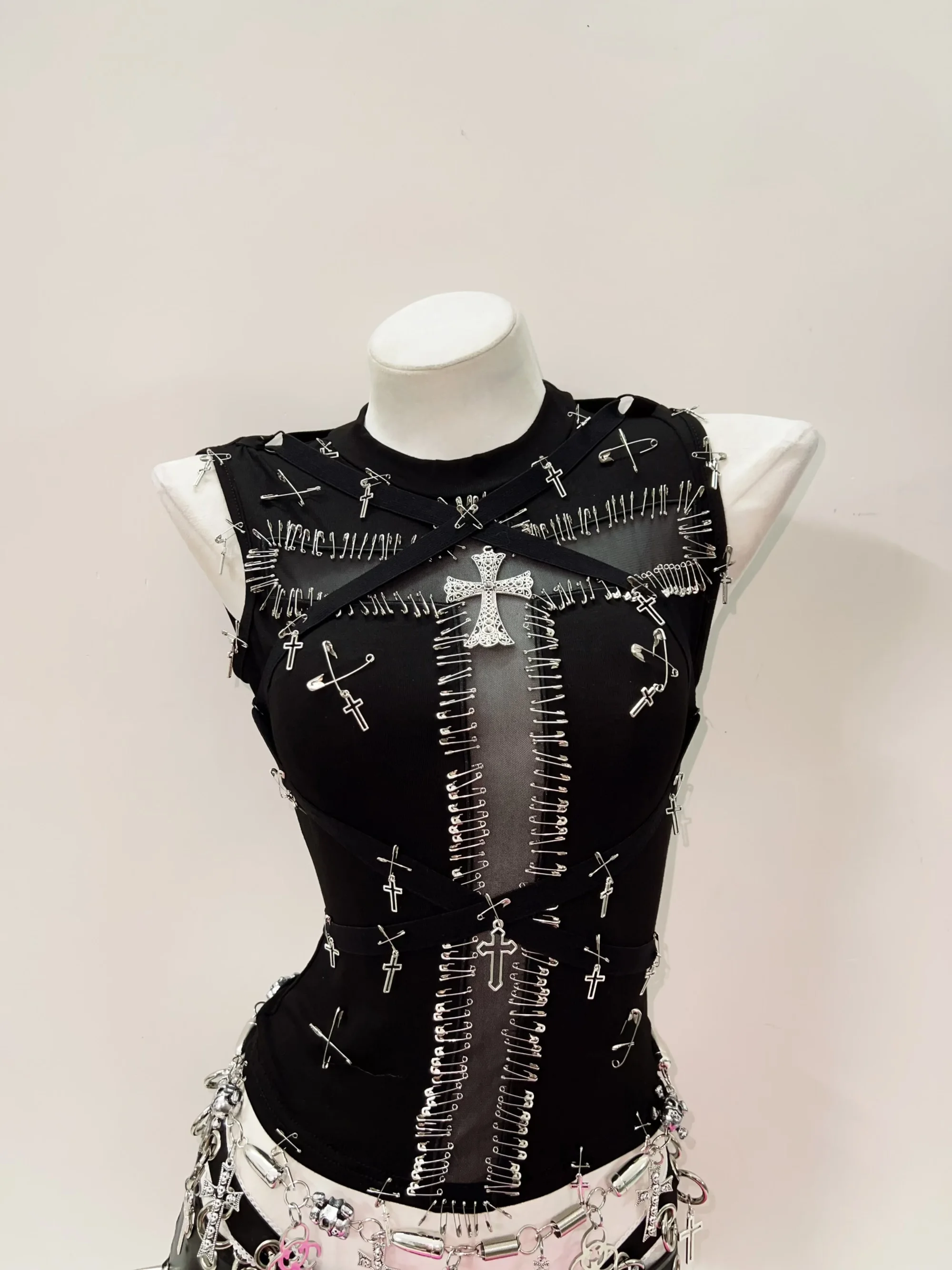 y2k clothes y2k crop top gothic clothes y2k fashion bustier top vintage tops Cross Tank Tops Gothic Tank Tops Punk Tank Tops