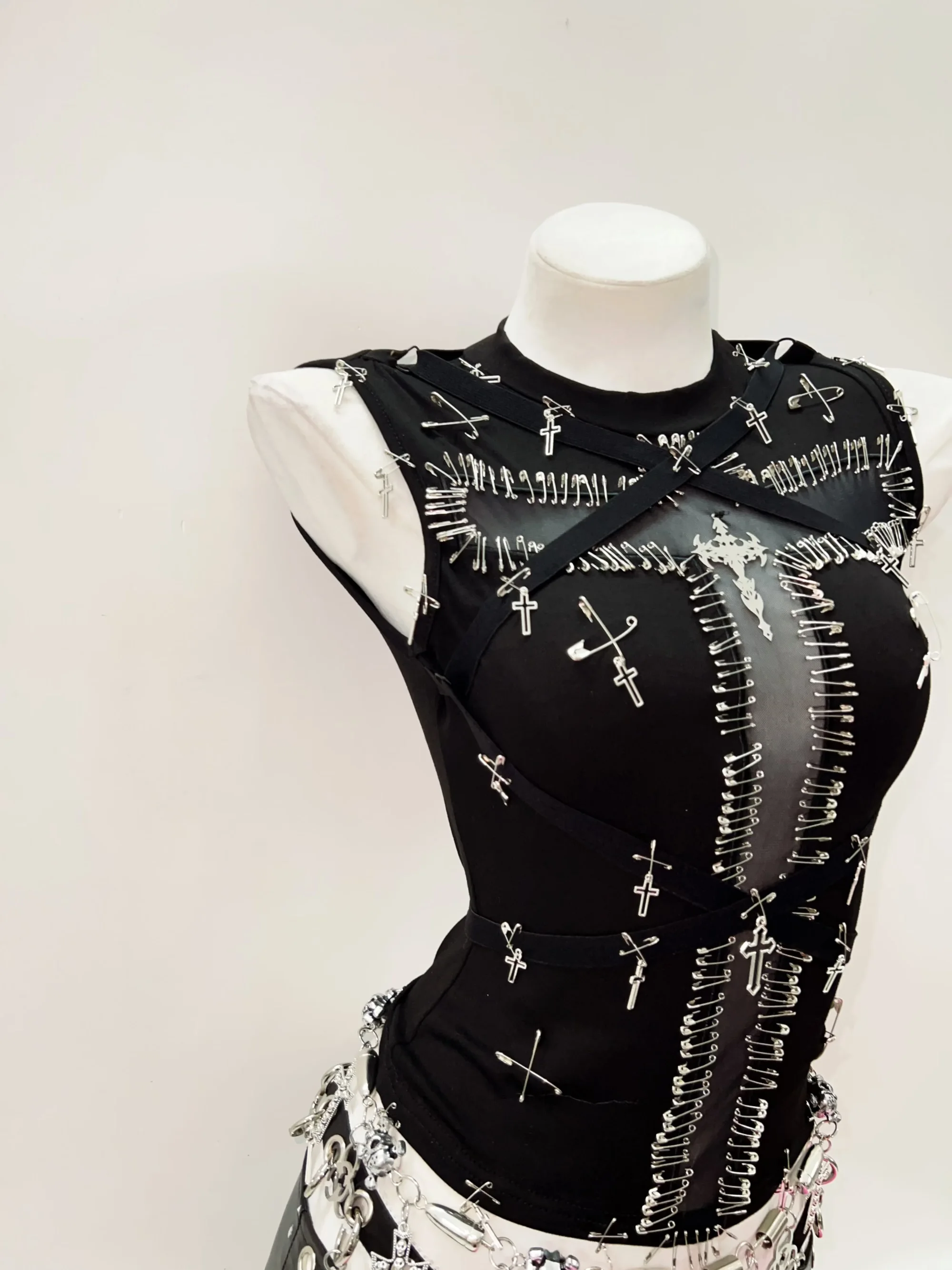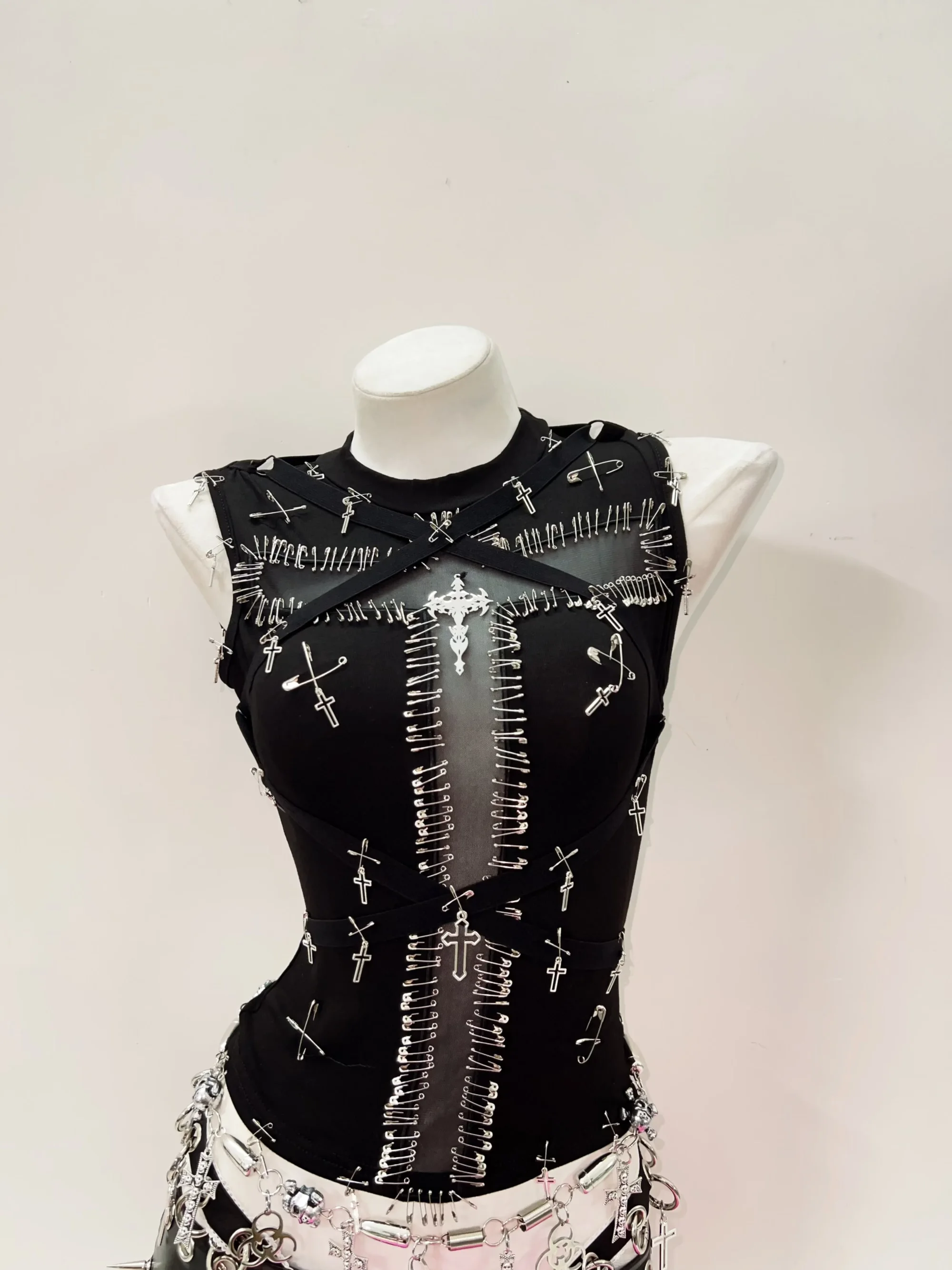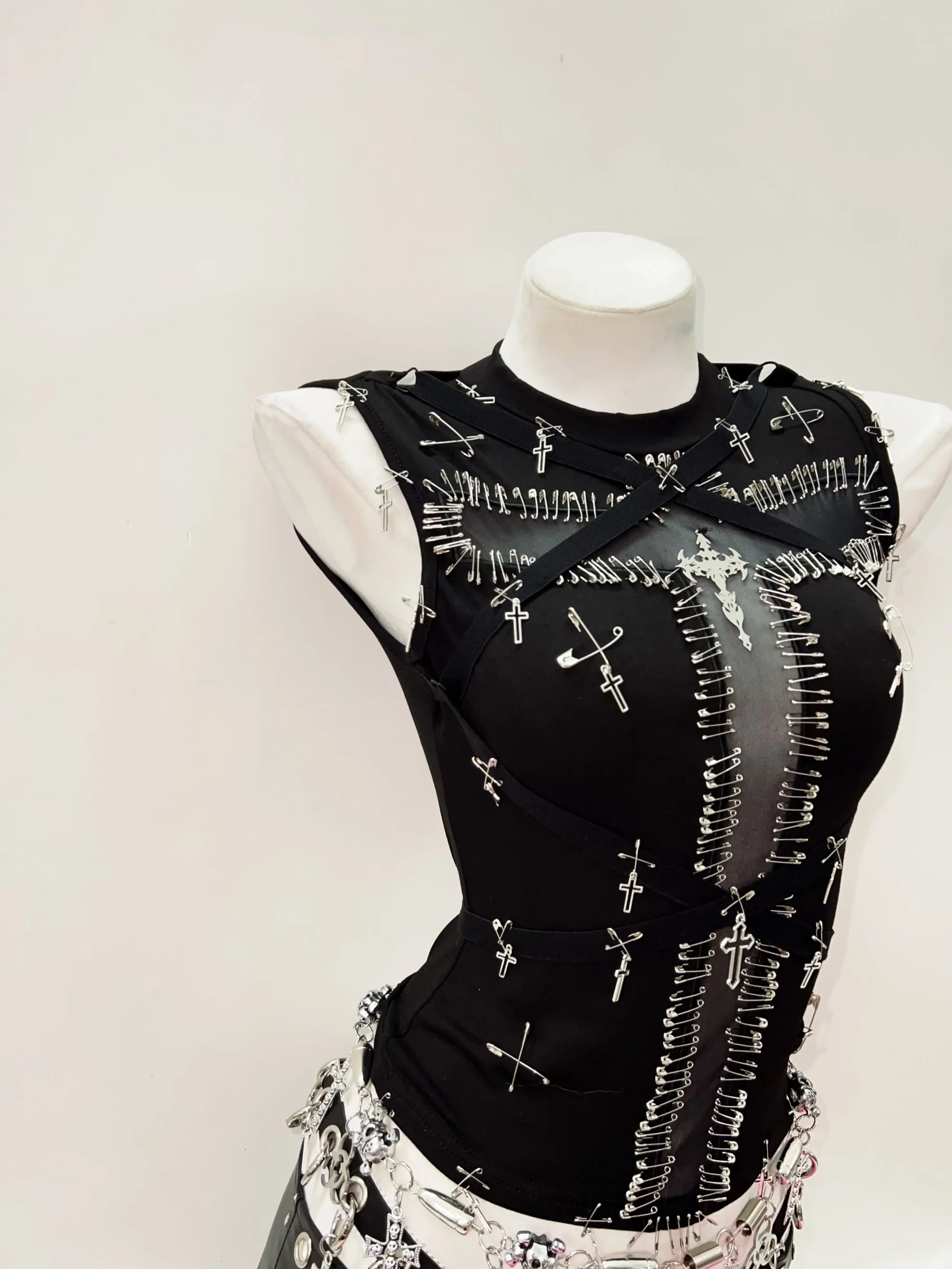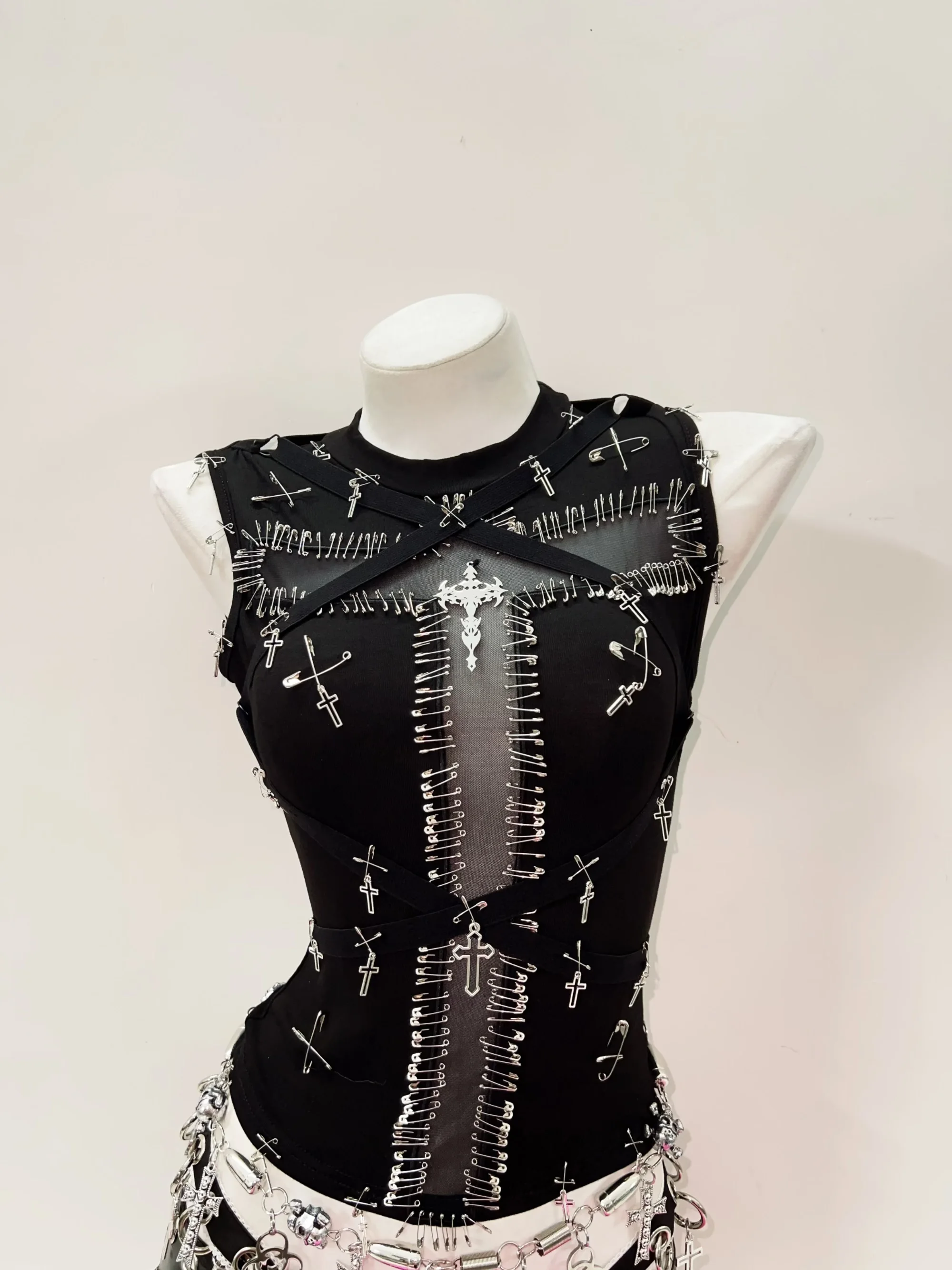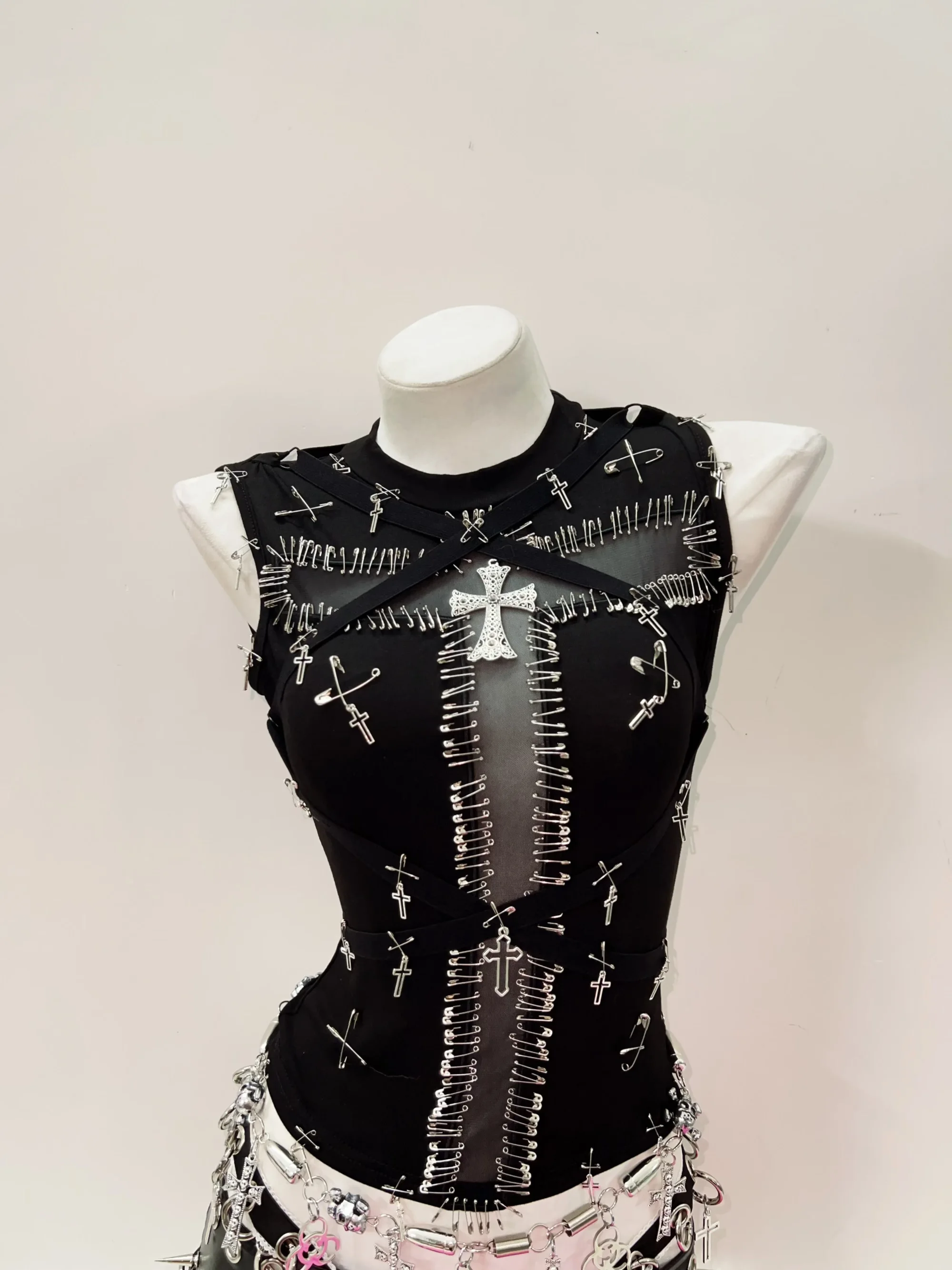 y2k clothes y2k crop top gothic clothes y2k fashion bustier top vintage tops Cross Tank Tops Gothic Tank Tops Punk Tank Tops
