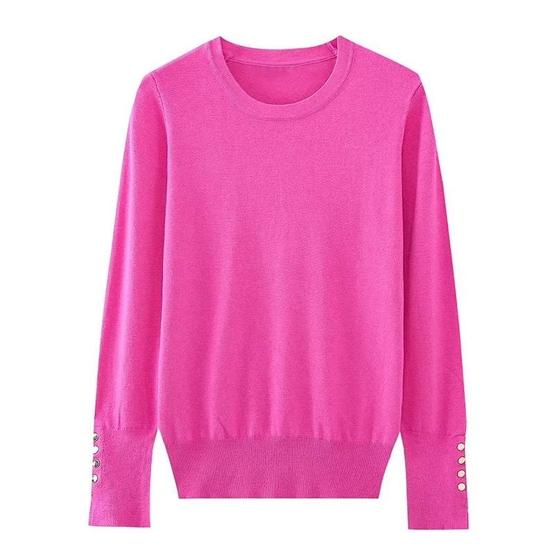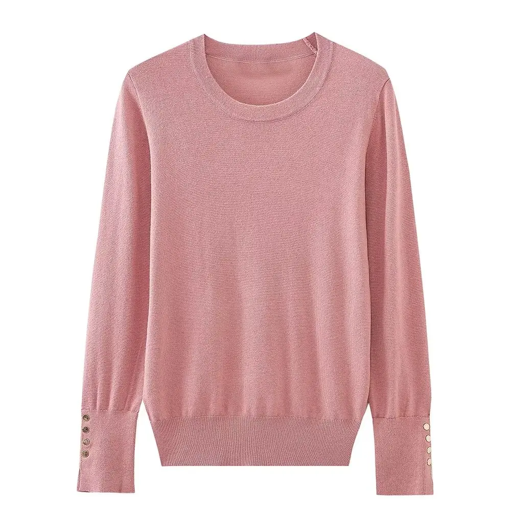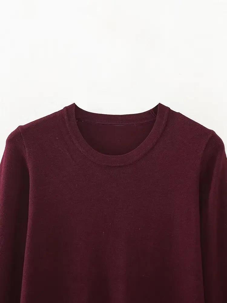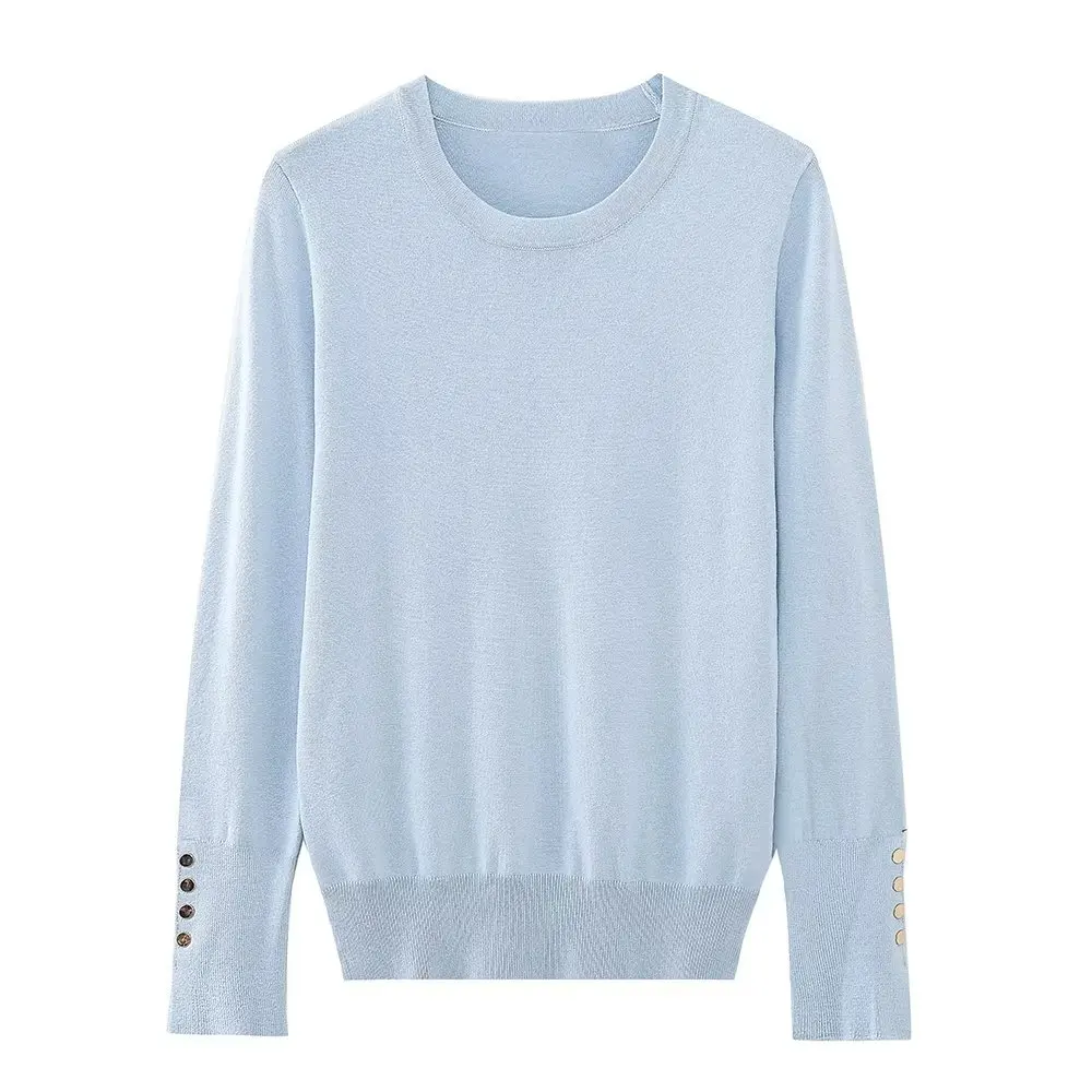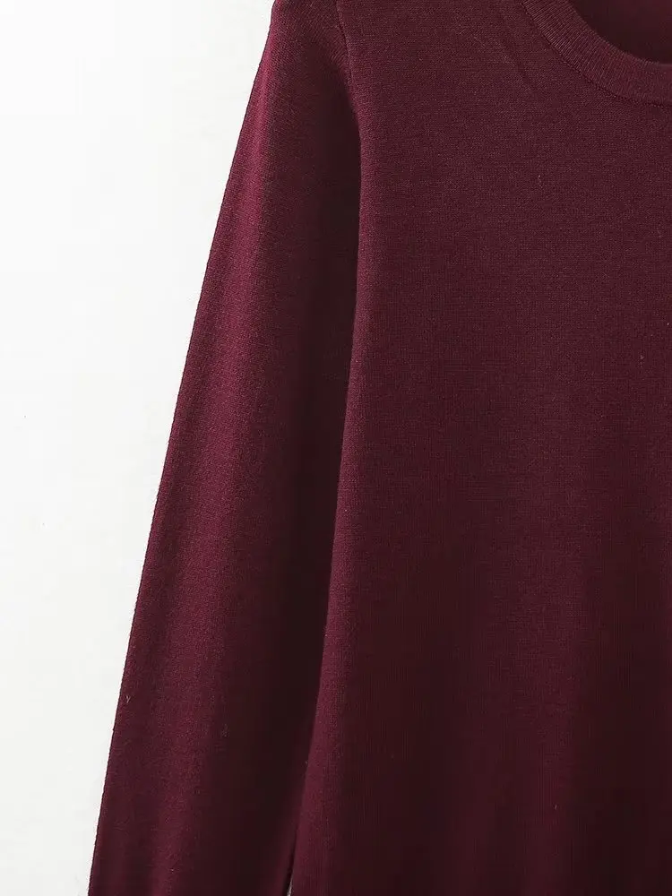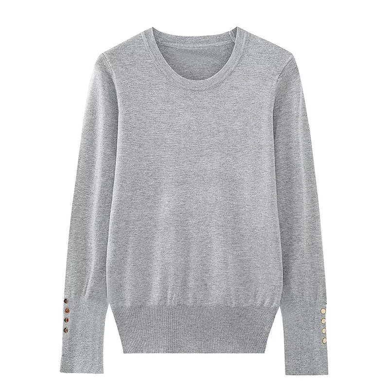 Autumn Women Solid Round Neck Long Sleeve Basic Knit Sweater