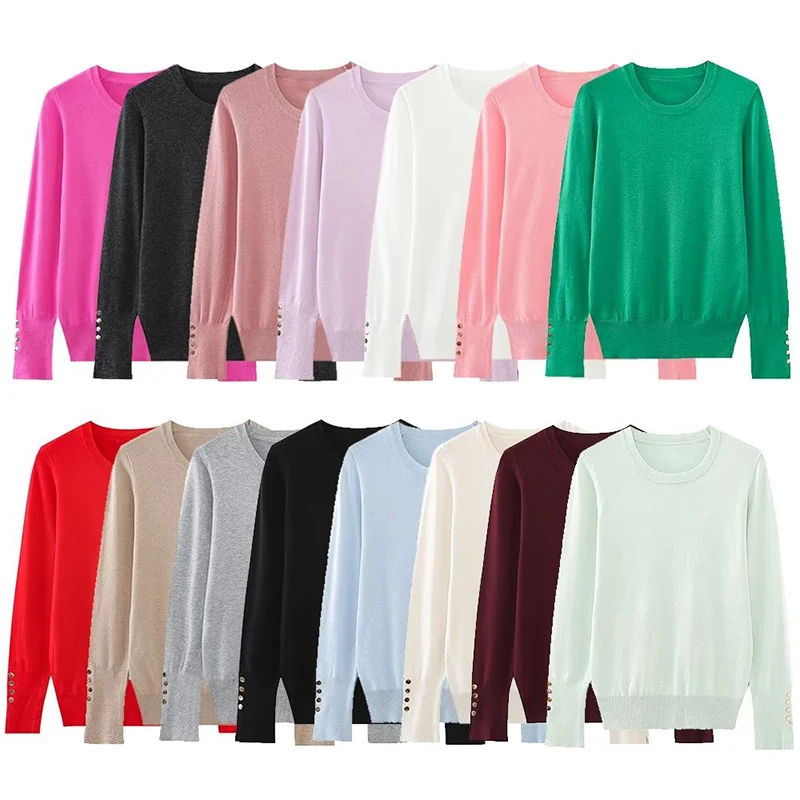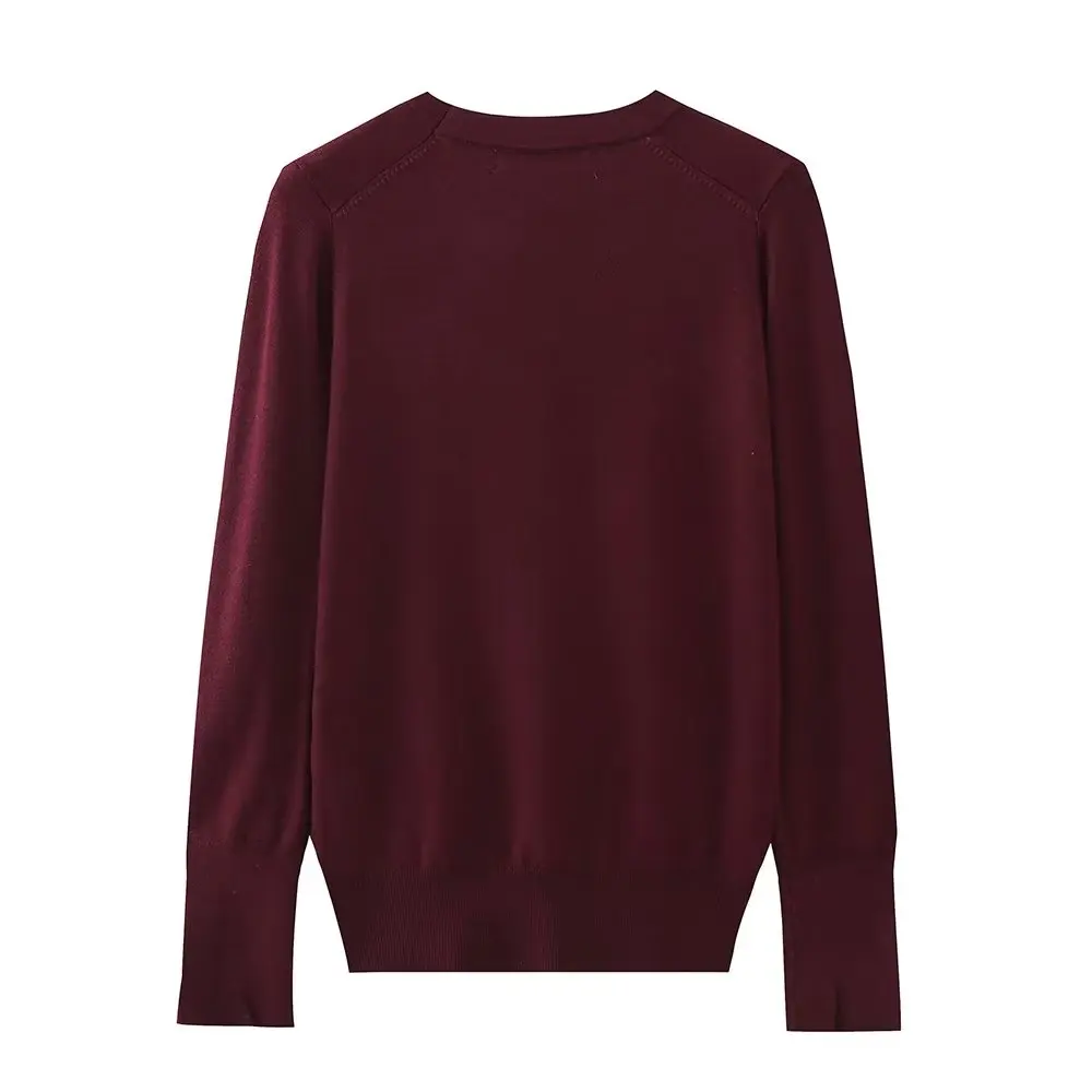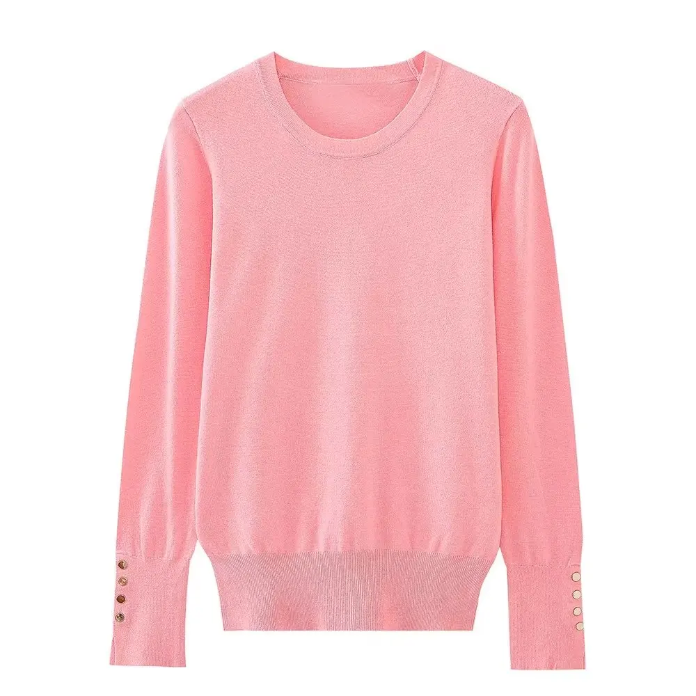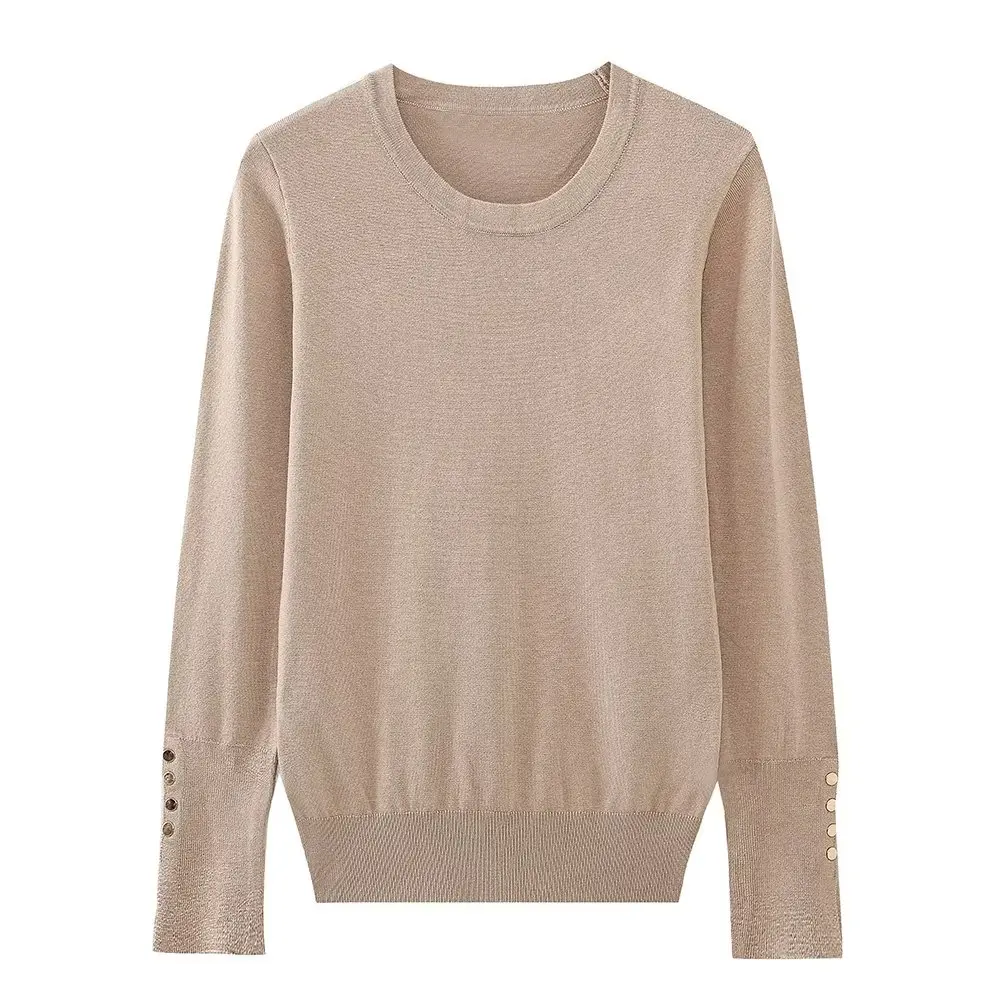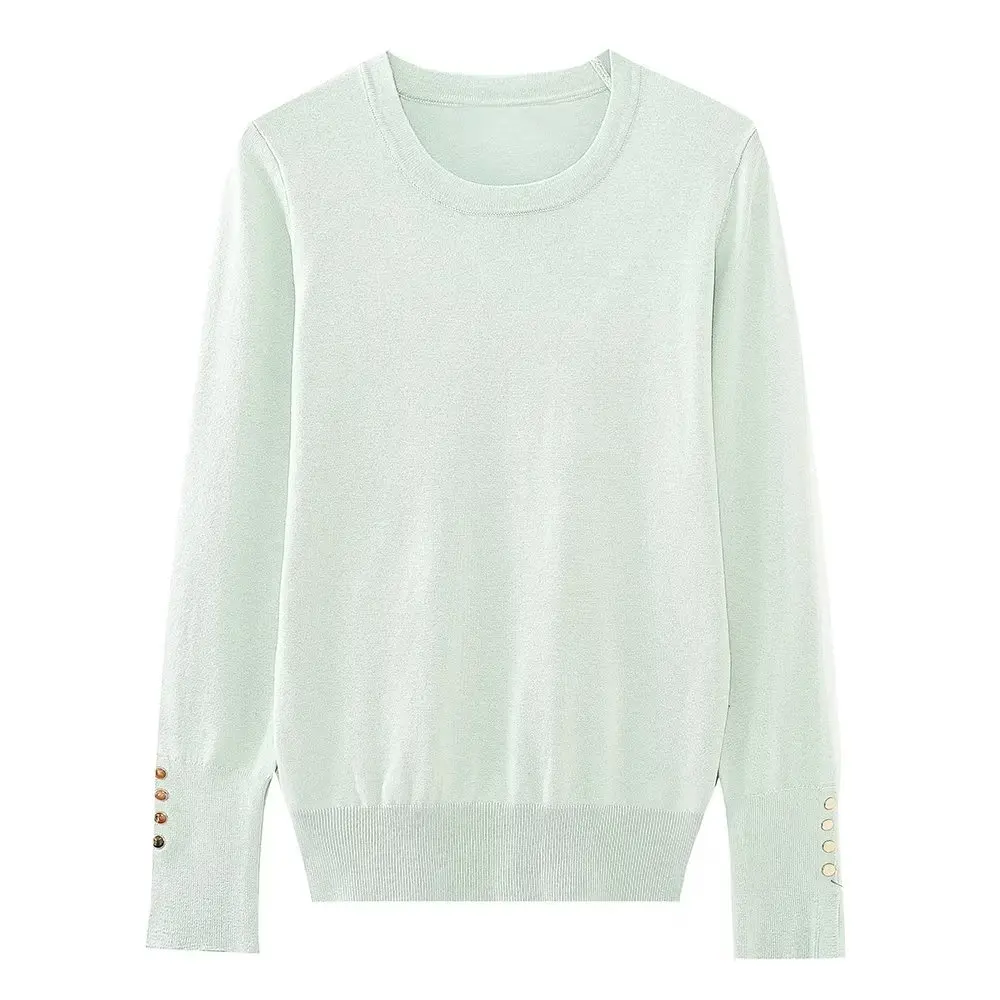 Autumn Women Solid Round Neck Long Sleeve Basic Knit Sweater