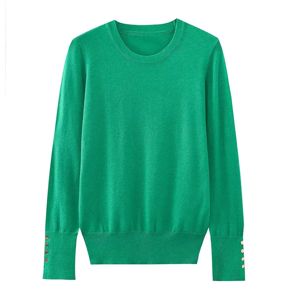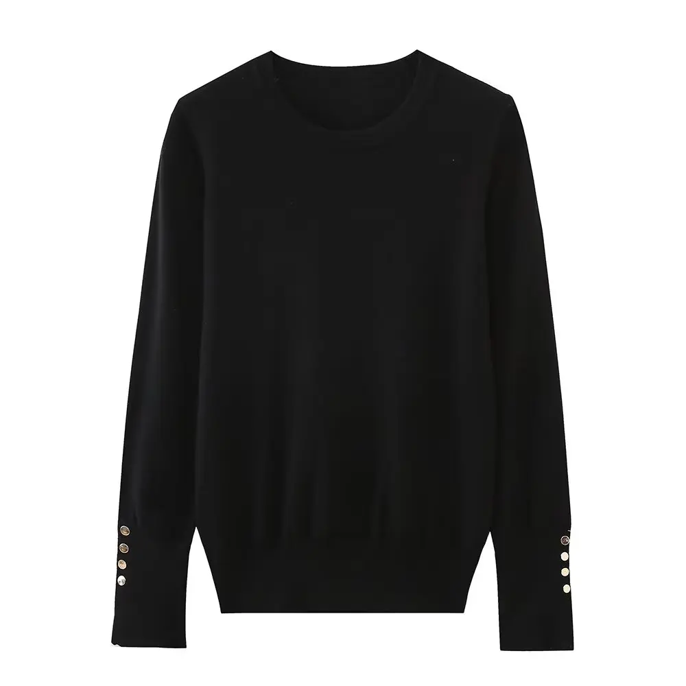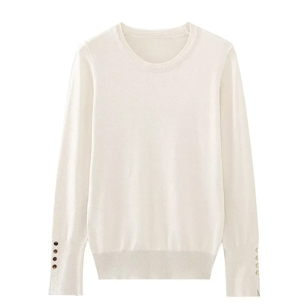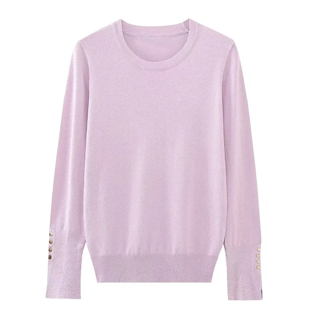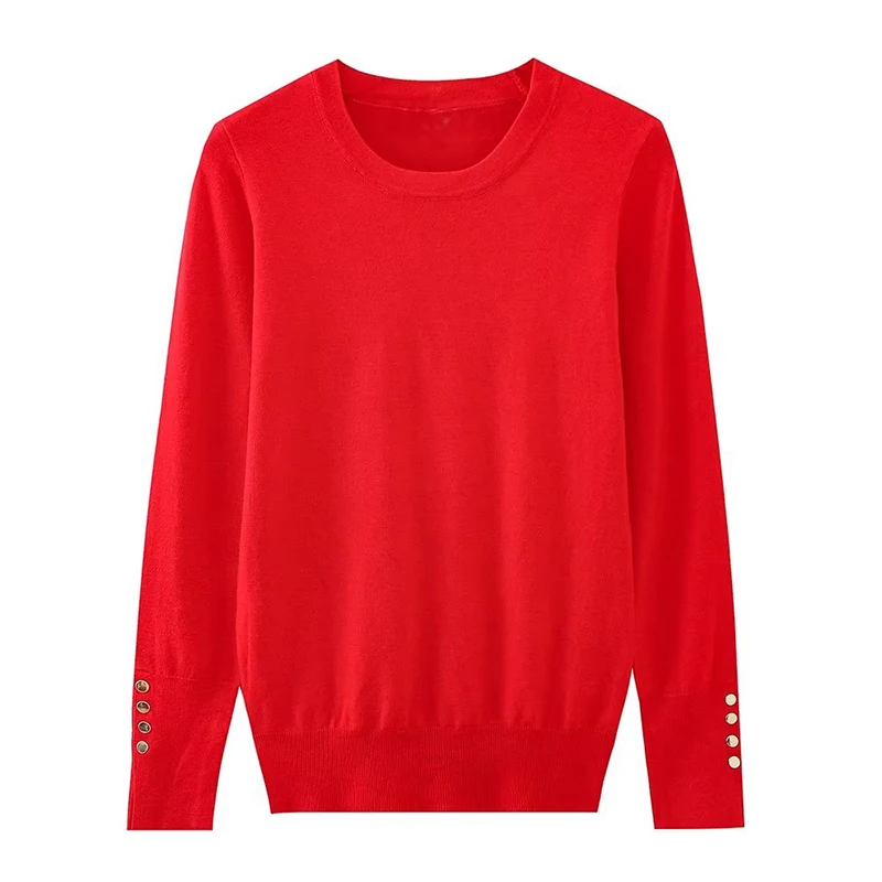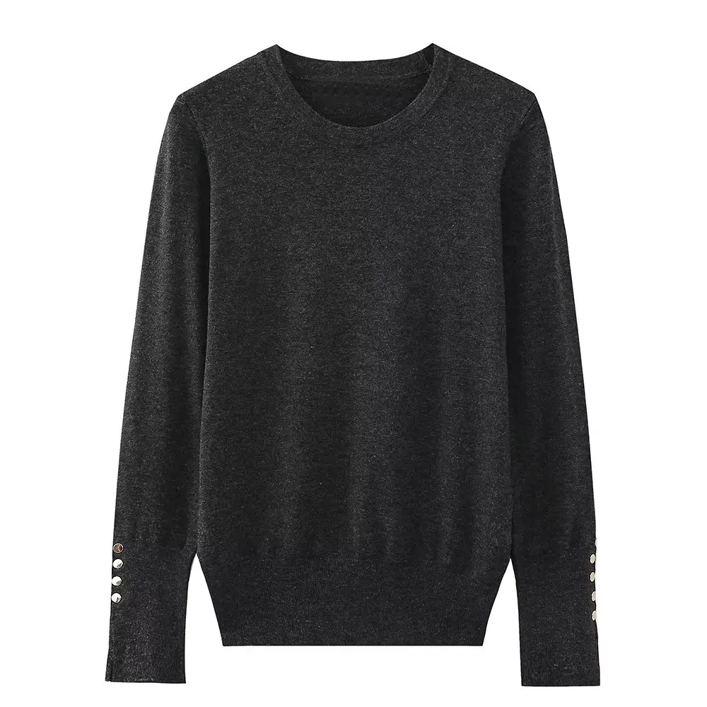 Autumn Women Solid Round Neck Long Sleeve Basic Knit Sweater