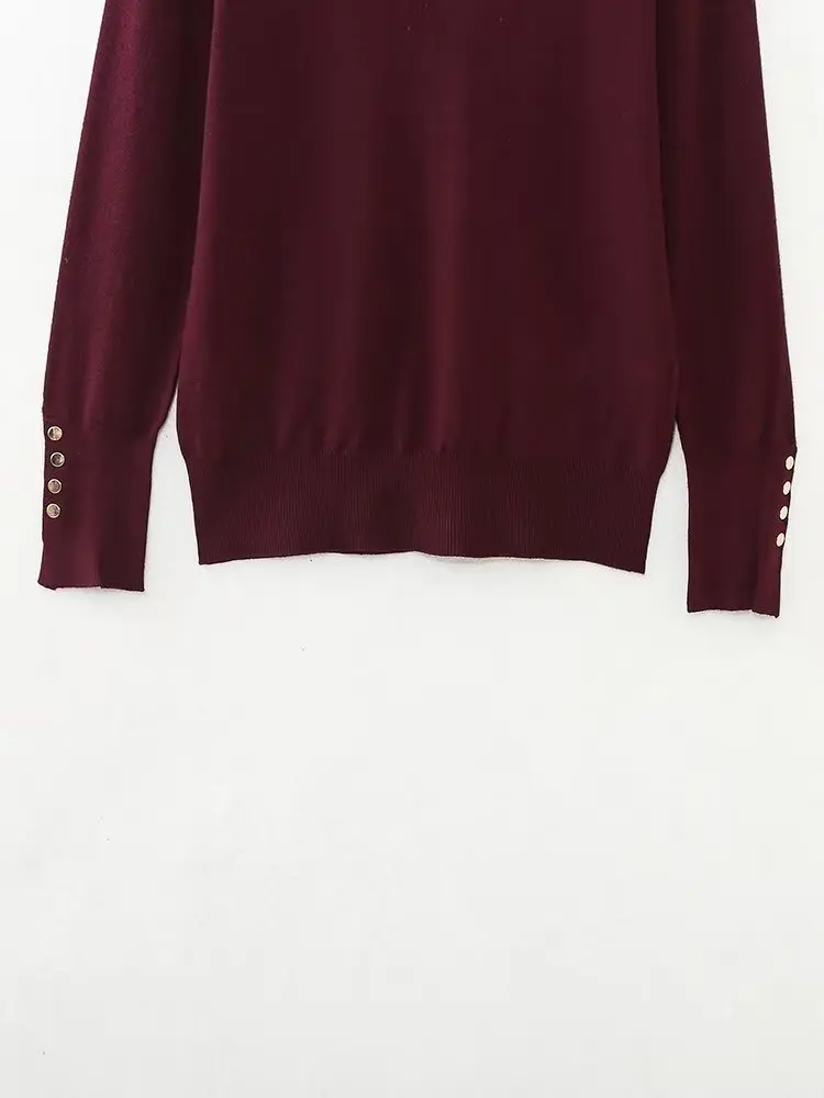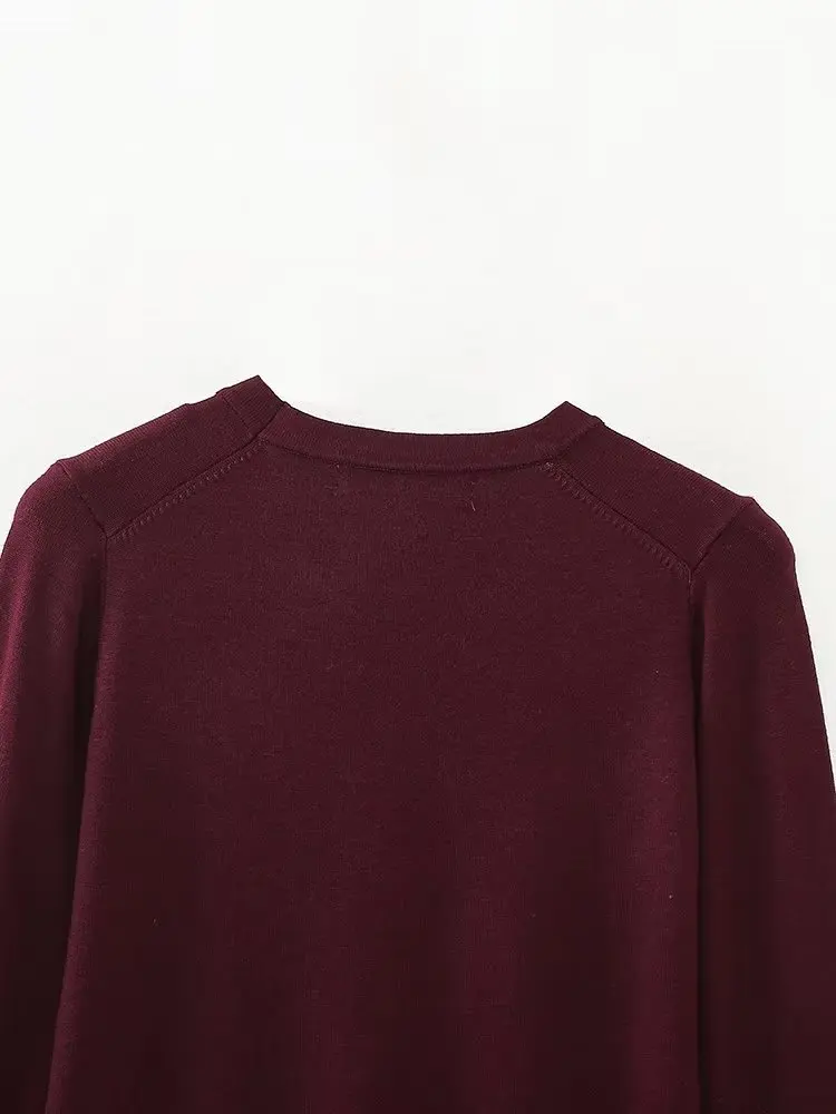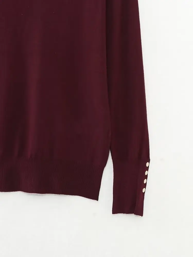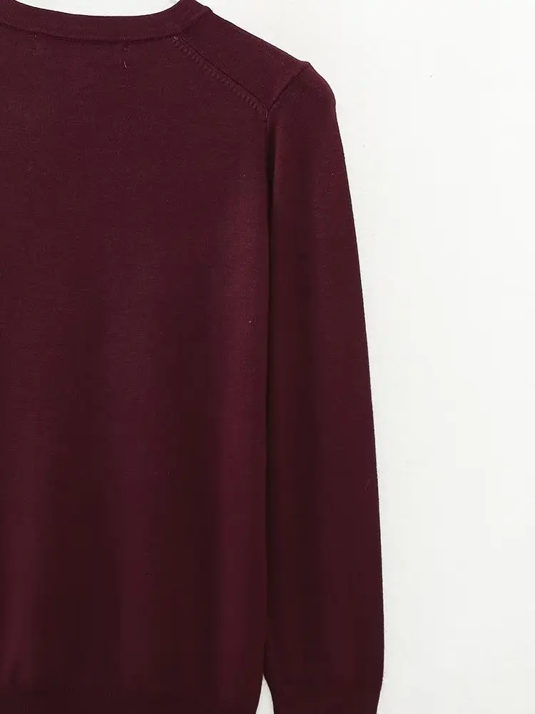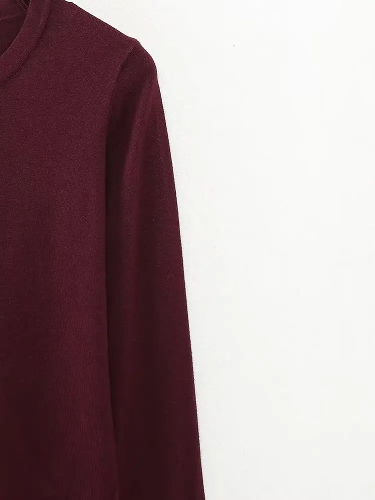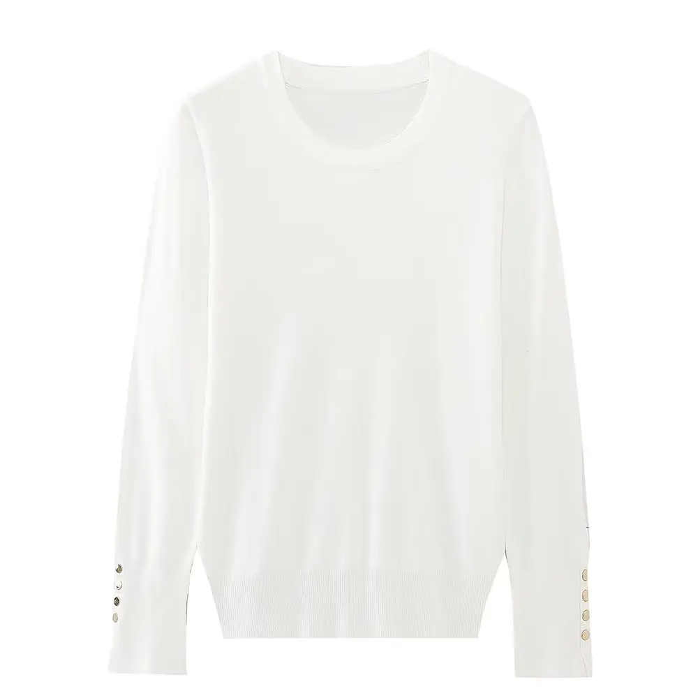 Autumn Women Solid Round Neck Long Sleeve Basic Knit Sweater